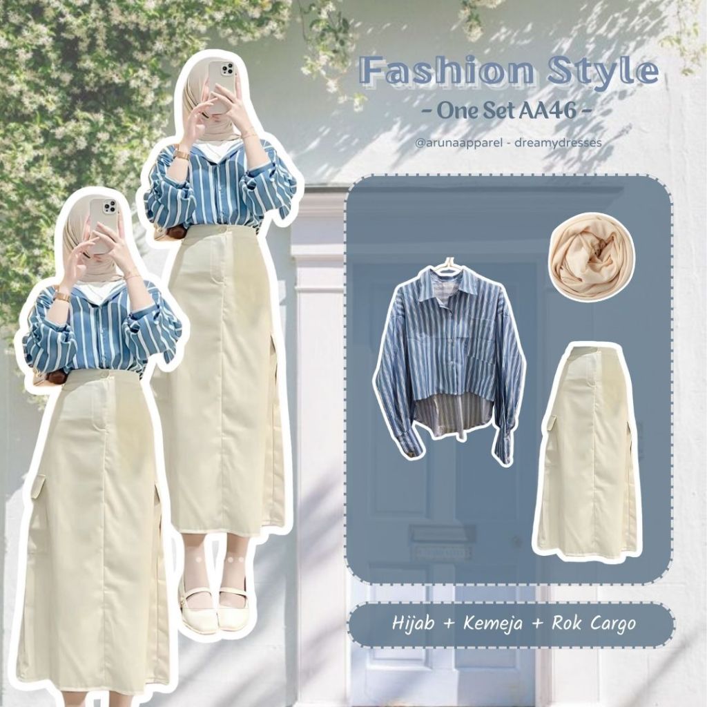 3in 1 One Set Cargo One Set Terbaru OOTD Korean Outfit Anak Perempuan Outfit Kerja Nongkrong One Set - AA46
