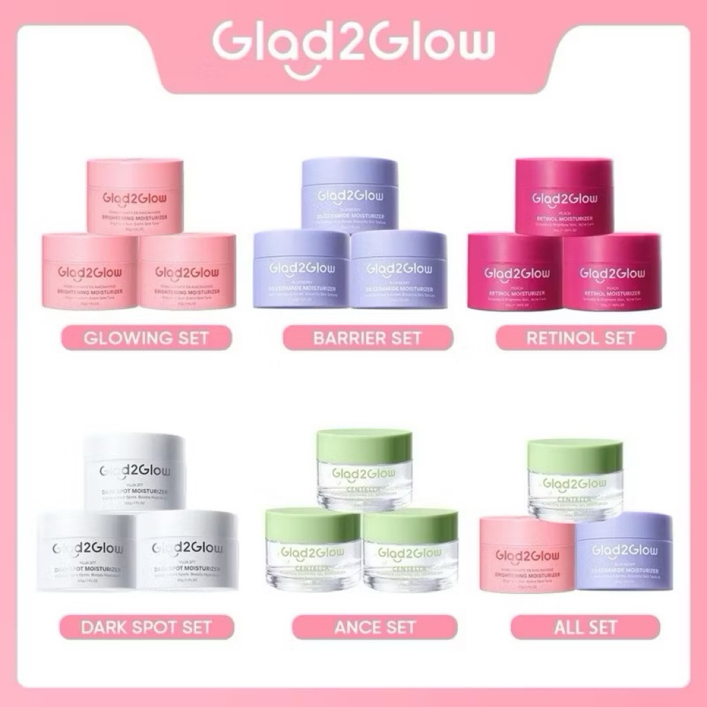 [3pcs]GLAD2GLOW MOISTURIZER ALL IN - POMEGRANATE / RETINOL / BARRIER / YUJA DARKSPOT / ACNE / KIWI 3D ACNE