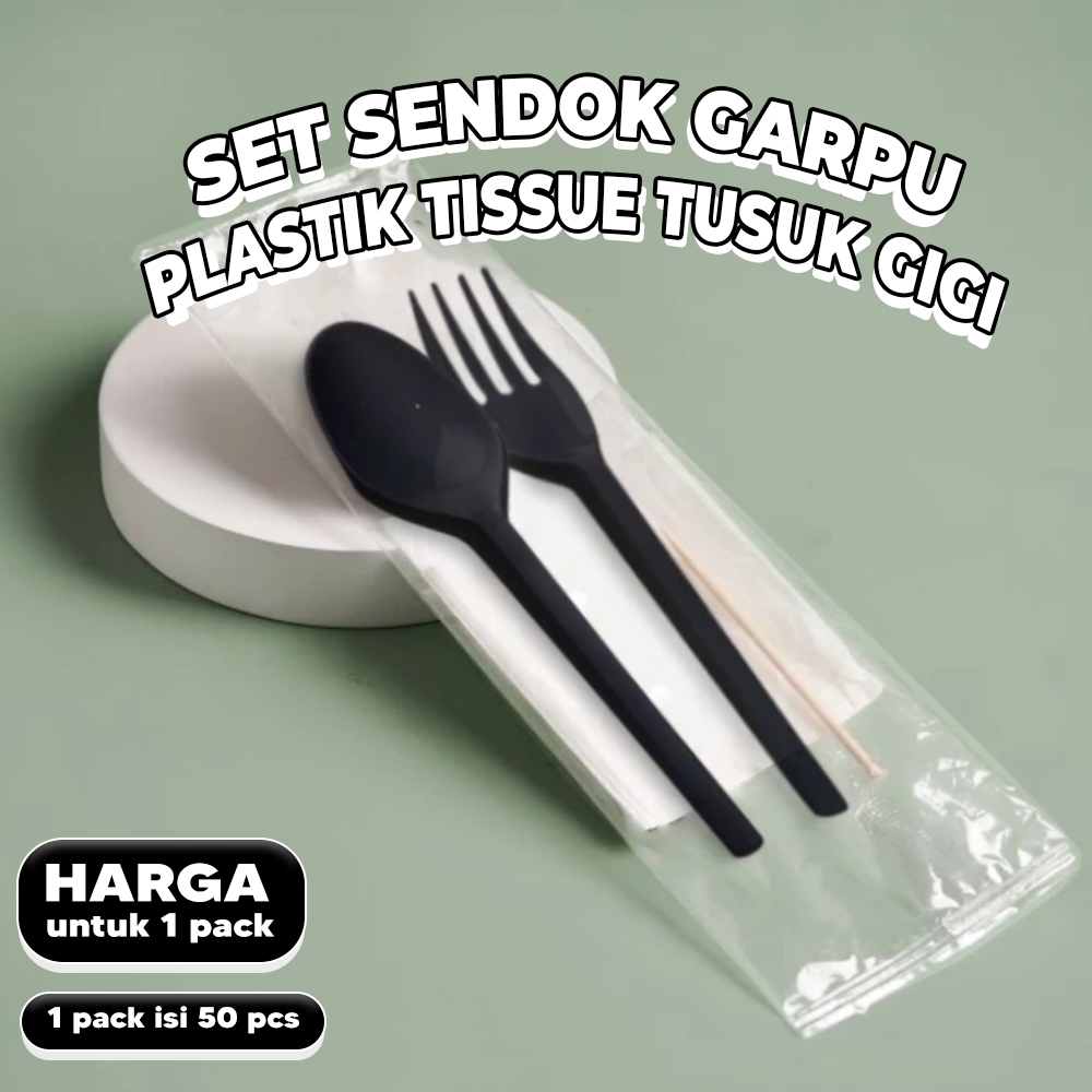 Set Sendok Garpu Plastik Tissue dan Tusuk Gigi HITAM