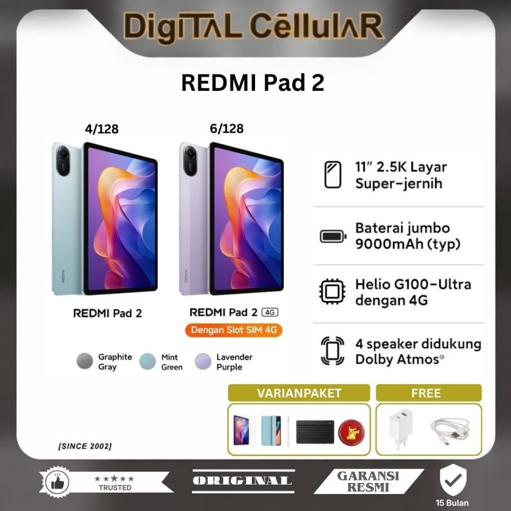(DCG) XIAOMI REDMI PAD 2 4/128 GB | PAD 2 4G 6/128 GB GARANSI RESMI 11 INCH WIFI ONLY