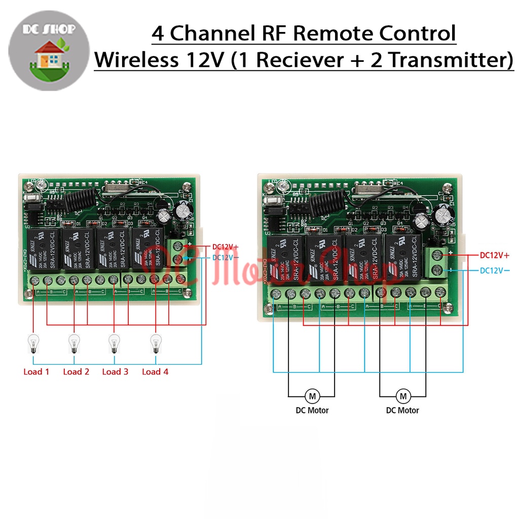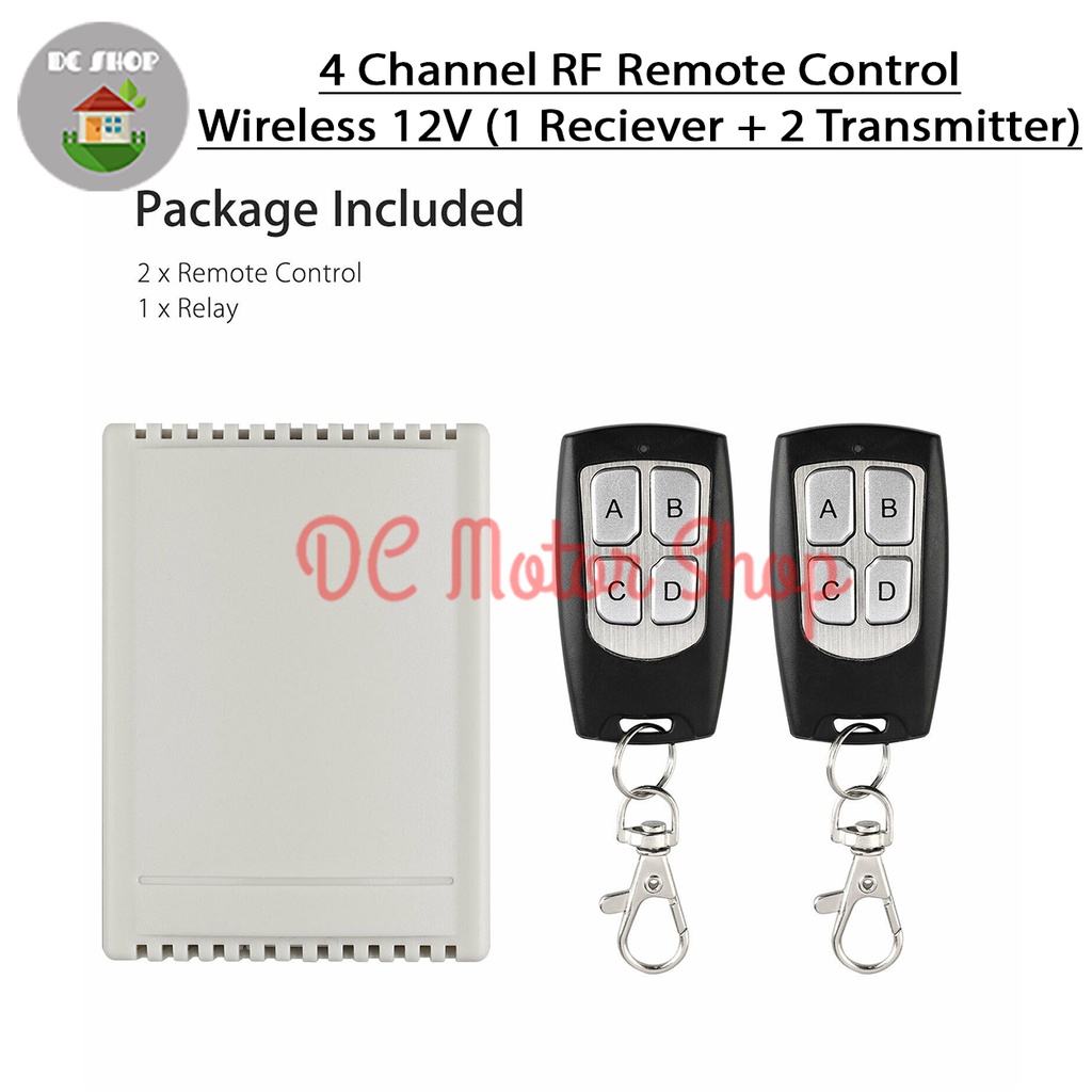 4 Channel RF Remote Control Wireless 12V (1 Reciever + 2 Transmitter)