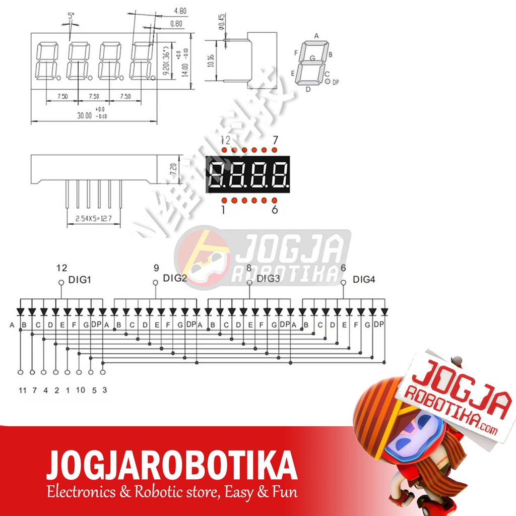 4 Digit Seven Segment 0.36 Inch 3461BS 3641BS Merah 7 Segmen Common Anoda Anode