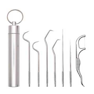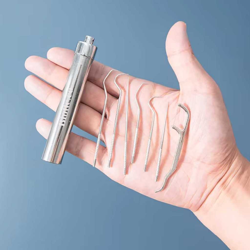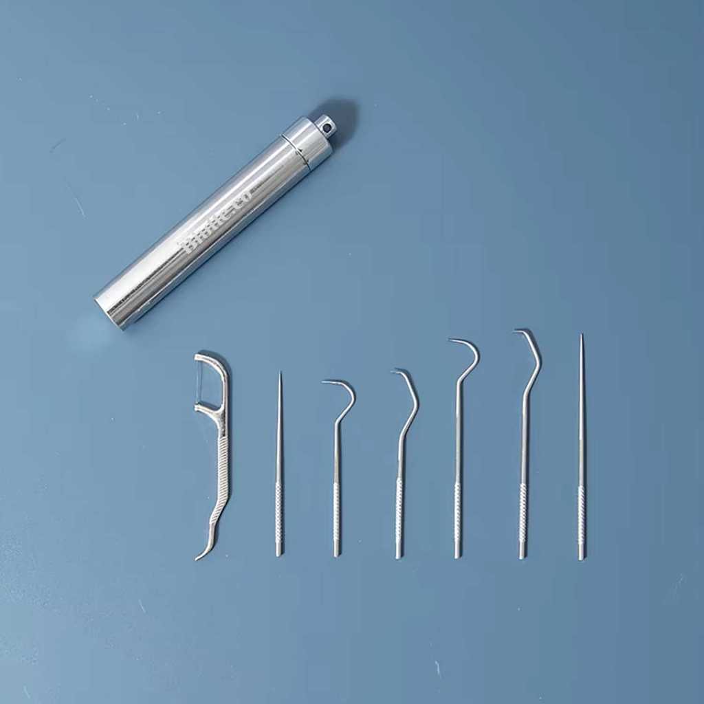 APEN Tusuk Gigi Stainless Steel Toothpick Set Mudah Dicuci Kebersihan Mulut Barang Unik