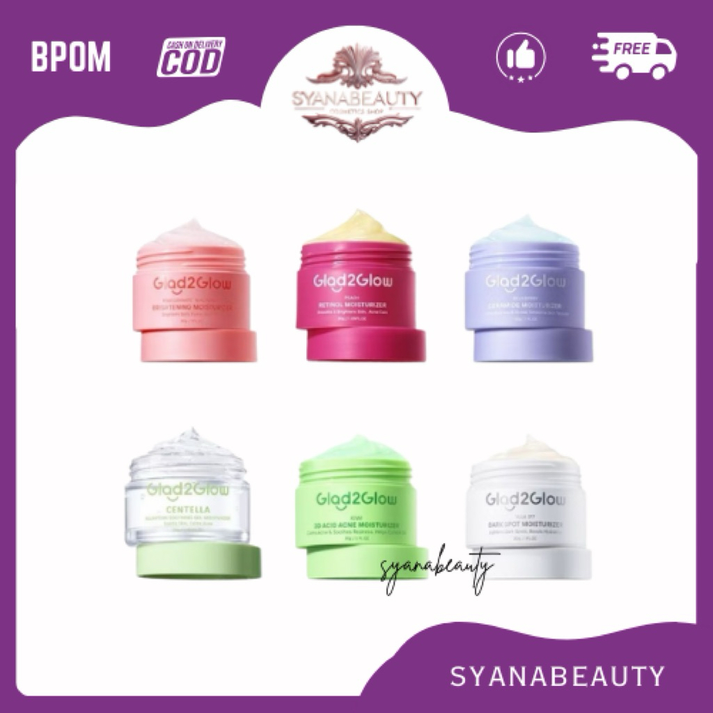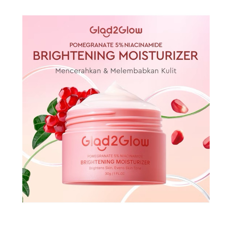 Ready Stock Glad2Glow Menjaga Kelembaban Kulit Pelembab Wajah Glad2Glow Pomegranate Niacinamide Brightening Moisturizer 30g Pelembab Pemutih Krim Wajah BPOM | Brightening Serum Pencerah Wajah Blueberry Moisturizer Cream 5x Ceramide Skin Barrier Repair 30g