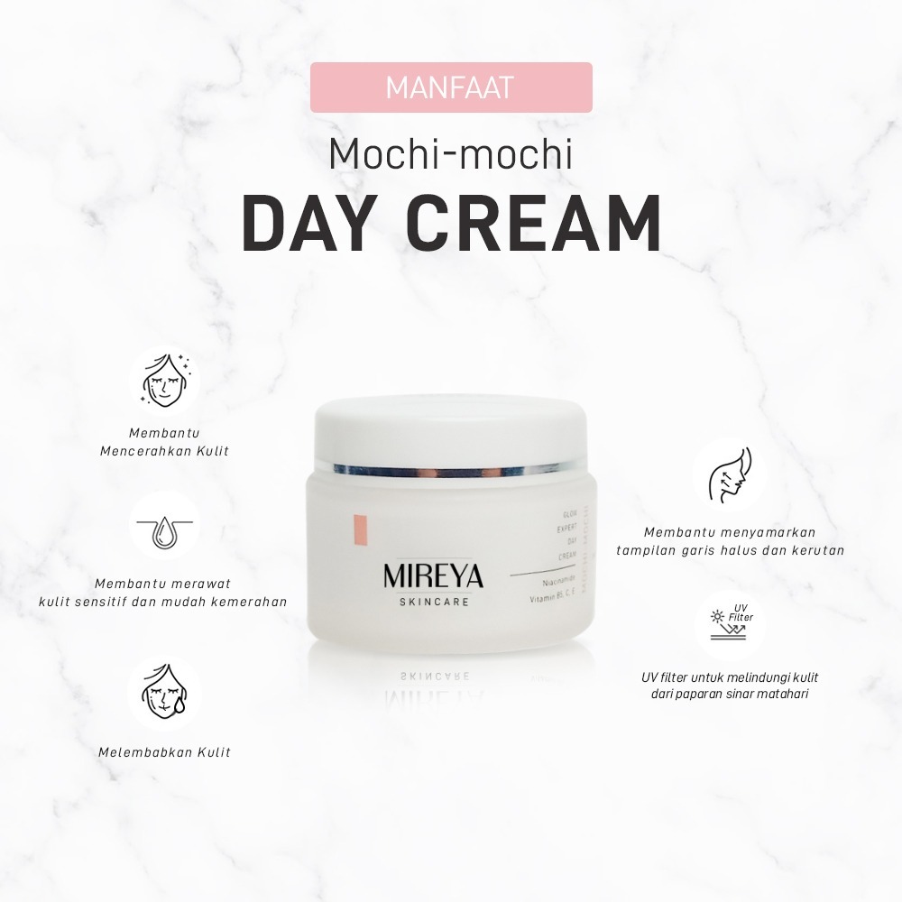 Mireya Mochi Glow Expert Day Cream 15gr – Krim Siang Pelembap Wajah untuk Mencerahkan & Melembapkan Kulit