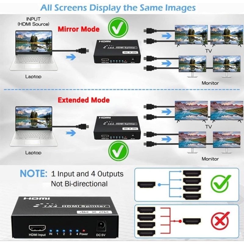 4 PORT HDMI VIDEO SPLITTER 4 PORT / 1 IN 4 OUT SUPPORT 4K SM4K104