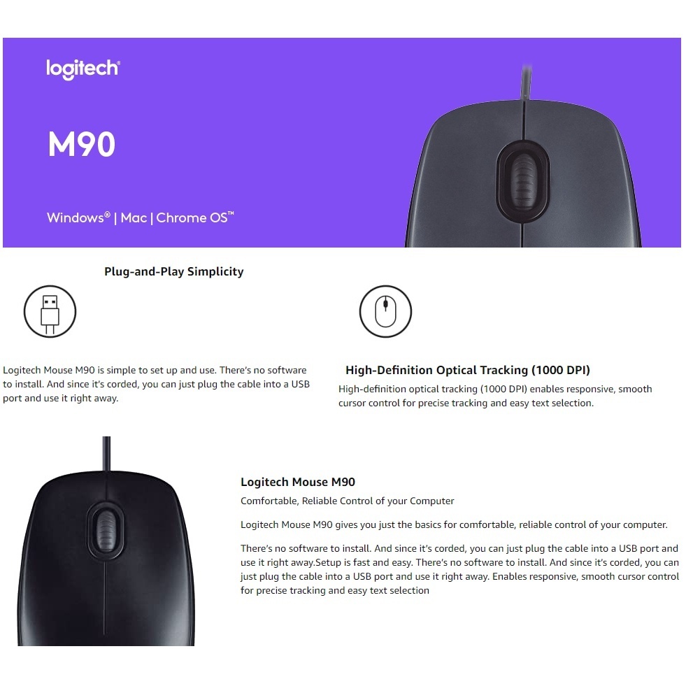 Logitech M90 Mouse Kabel Wired USB Optical Sensor | Garansi 1 Tahun
