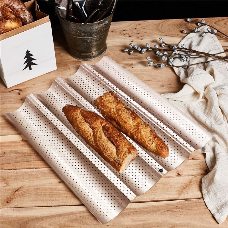 4 Slots French Bread Baking Tray/Baguette Baking Tray/Non Stick Perforated Baguette Bake Mold Pan
