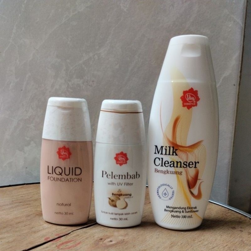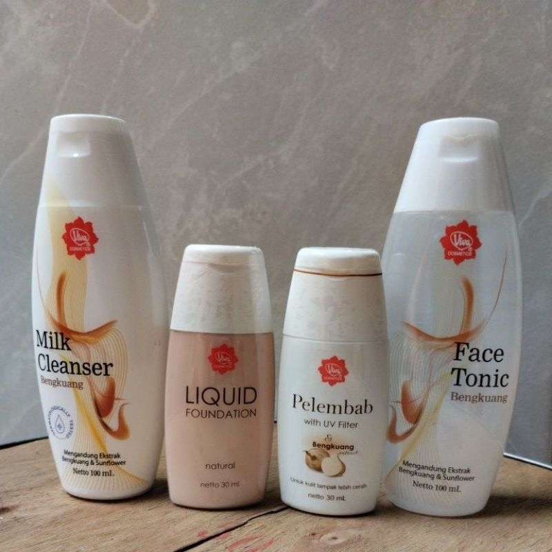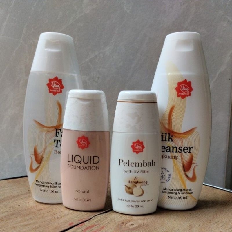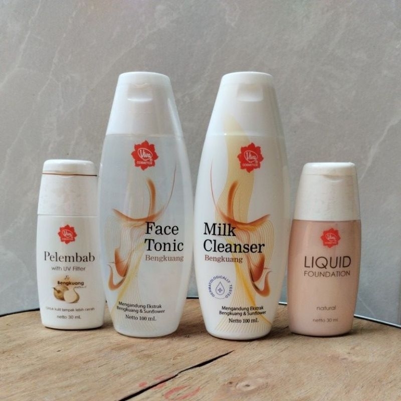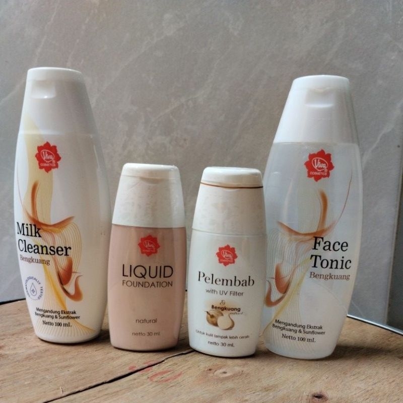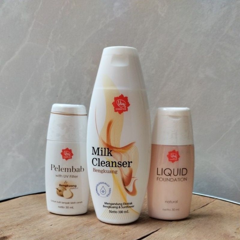 Viva Cosmetics Paket Pelembab | Milk Cleanser Bengkuang | Face Tonic Bengkuang 100ml | Foundation Perawatan Wajah