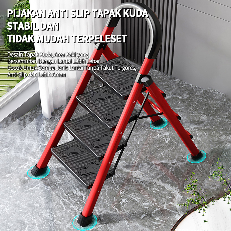 4 Step Tangga Rumah Lipat Tangga Besi Lipat Household Steel Ladder / Baja Karbon Tangga Lipat