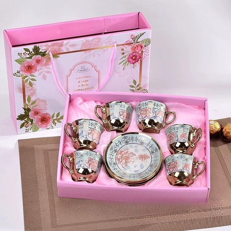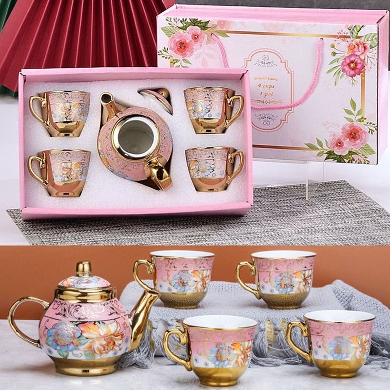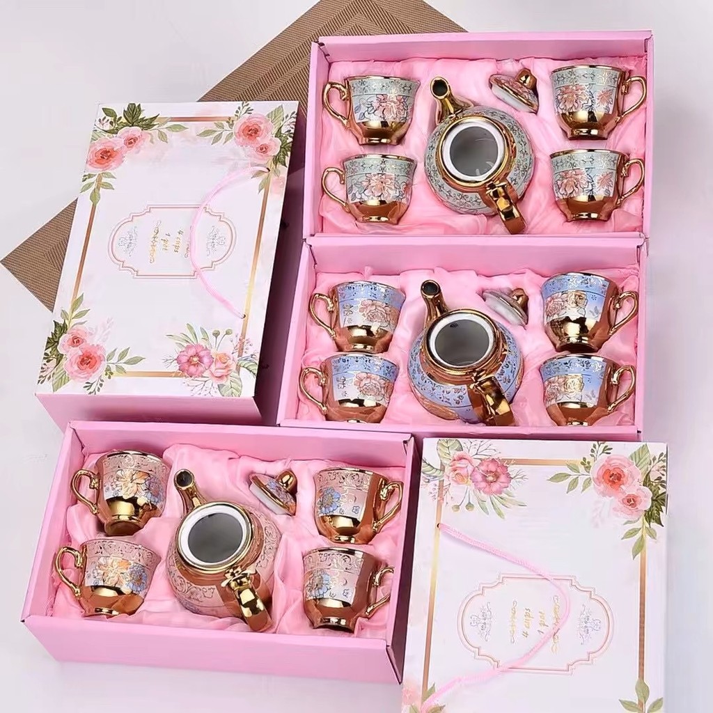 4 Styles Set Teko Cangkir Dan Piring Keramik European Classic Style / Cangkir Porcelain Teapot Motif Bunga Mawar / Parcel Kado Teko Cangkir