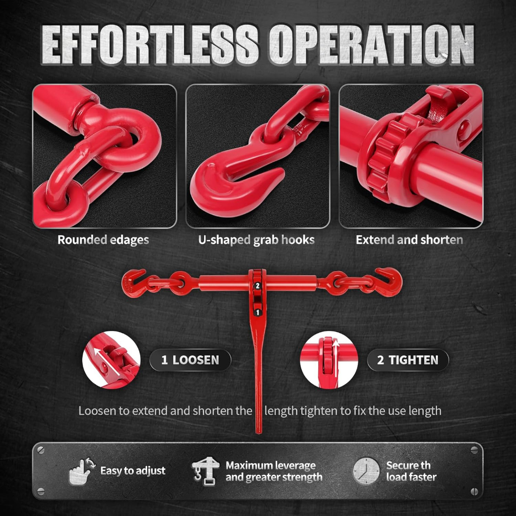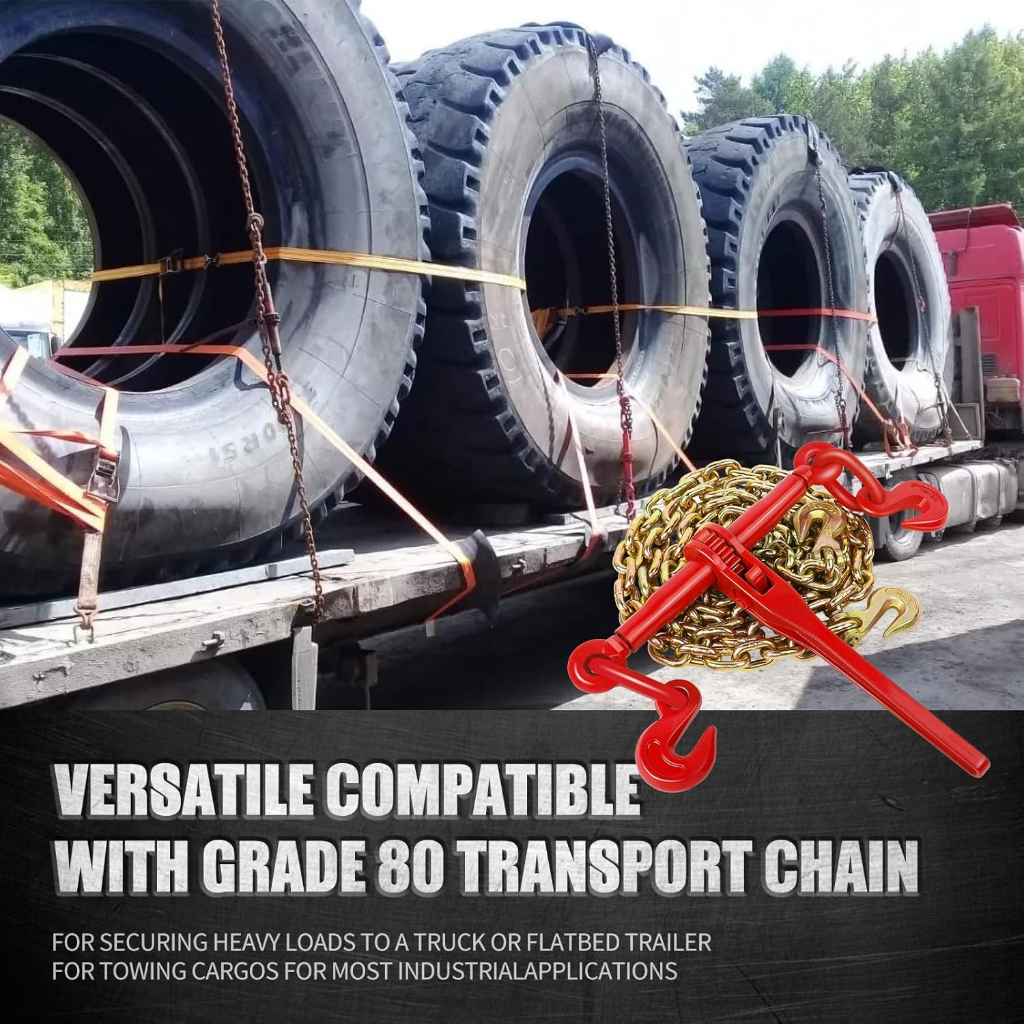 4 Ton Ratchet Load Binder Set Double Hook + Chain 6m 10mm -ARBER TOOLS