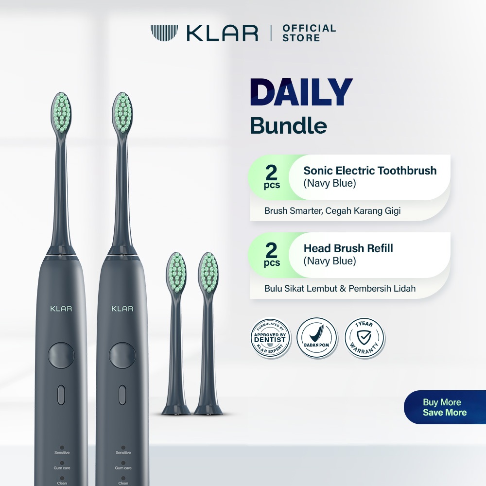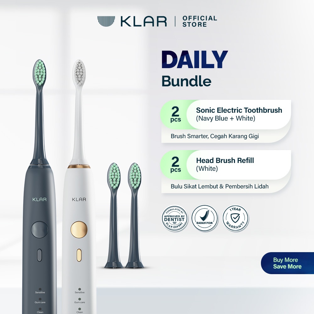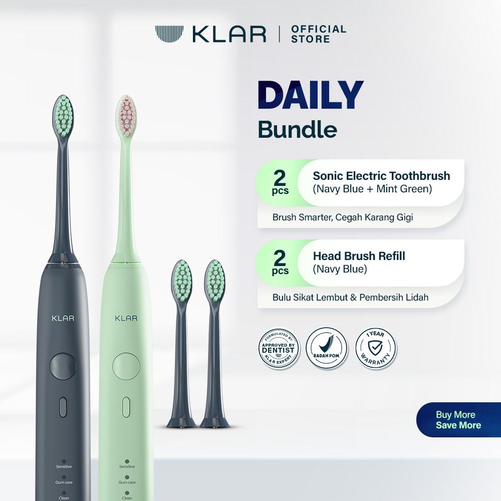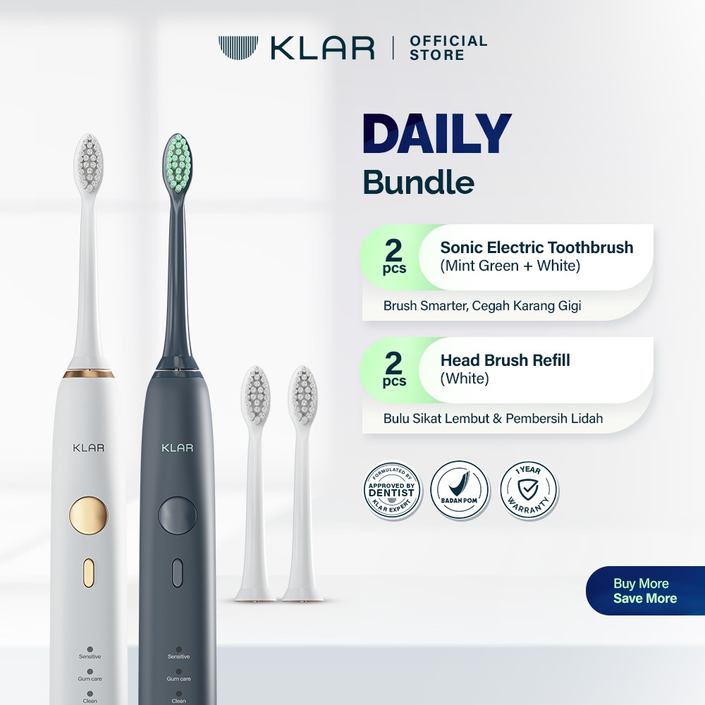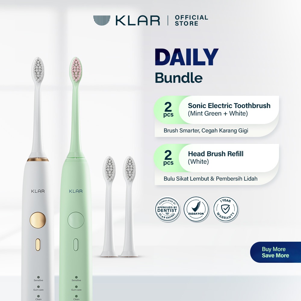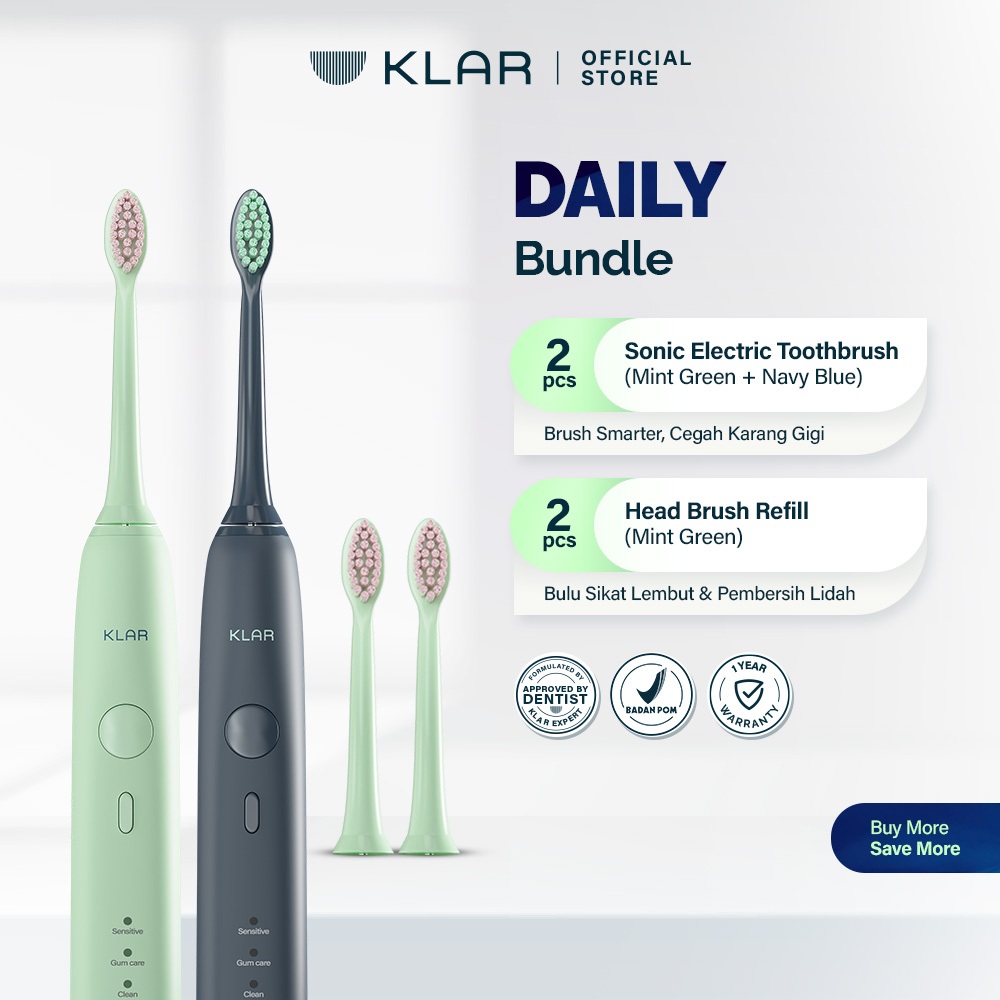 KLAR Daily Bundle - Paket Hemat Sikat Gigi Elektrik Cocok Untuk Pengguna Behel atau Gigi Sensitif