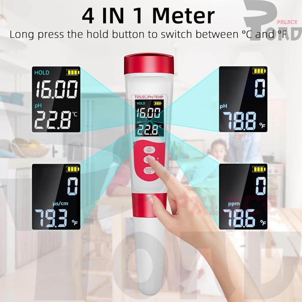 4 in 1 Water Quality Tester PH TDS EC Temp Water Quality Detector