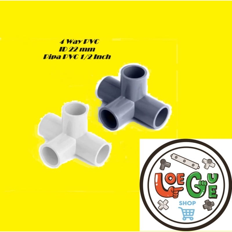 4 way sambungan fitting konektor side tee elbow pipa pvc 4 cabang arah ukuran 1/2 inch atau 22 mm warna Putih dan abu-abu rangka hidroponik grosir