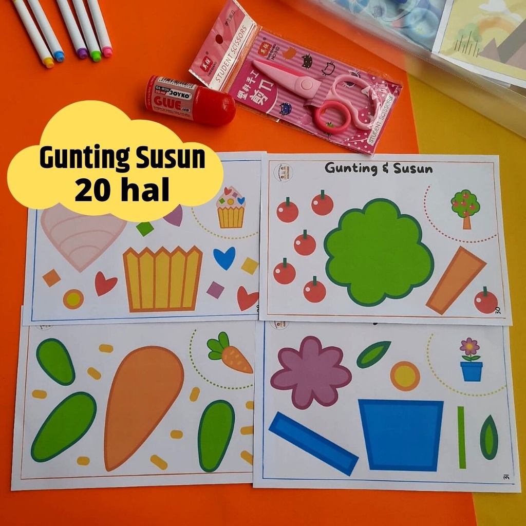 40 hal Worksheet Anak 2 3 4 5 6 Tahun Aktivitas Menggunting Dan Menempel TK PAUD PRESCHOOL