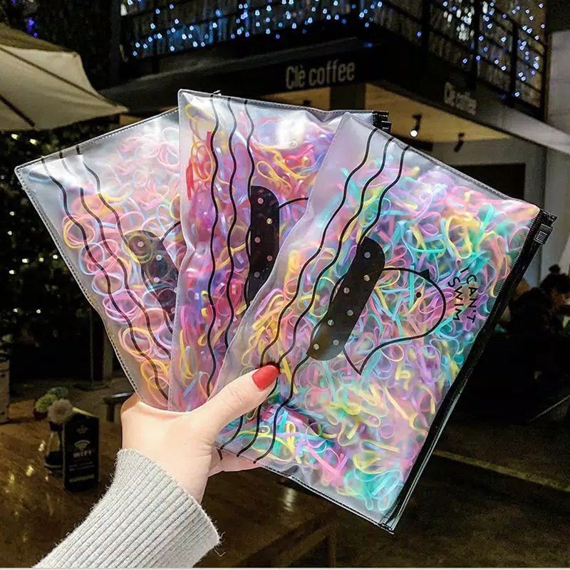 4000PCS KARET JEPANG FREE POUCH IKAT RAMBUT KARET JEPANG MEDIUM DAN KECIL