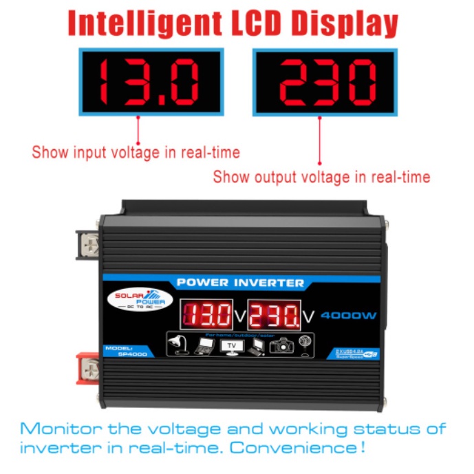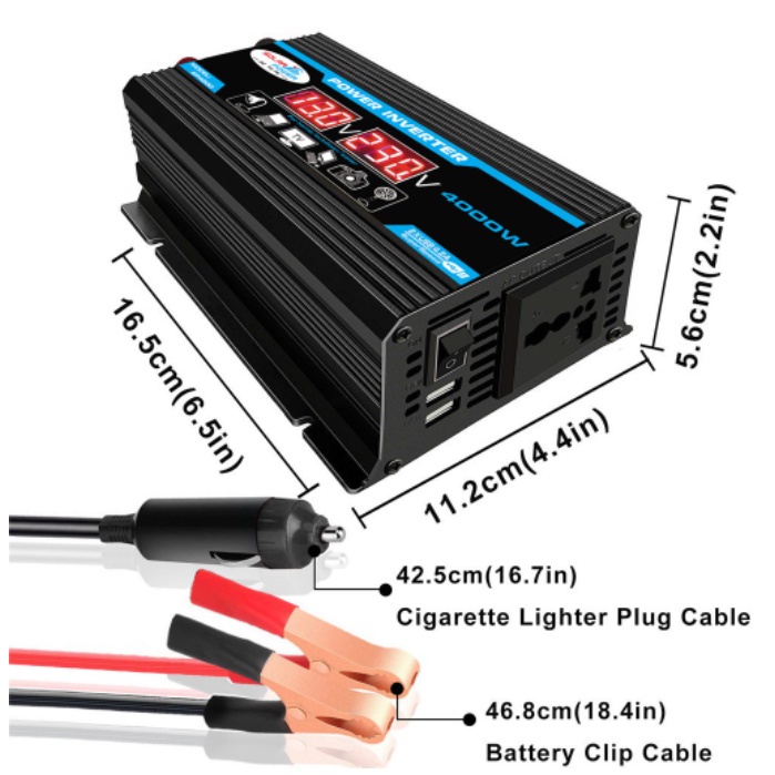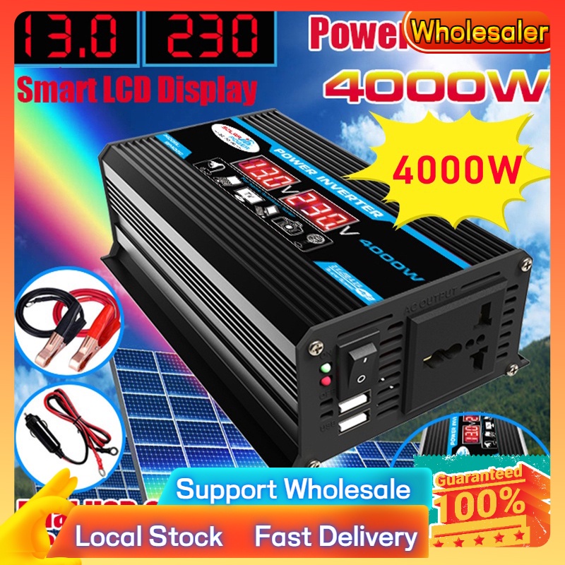 4000W Mobil Inverter 12V DC Ke 220V AC Power Converter LED Display Dual USB Pure Sine Wave Baru Mobil Inverter