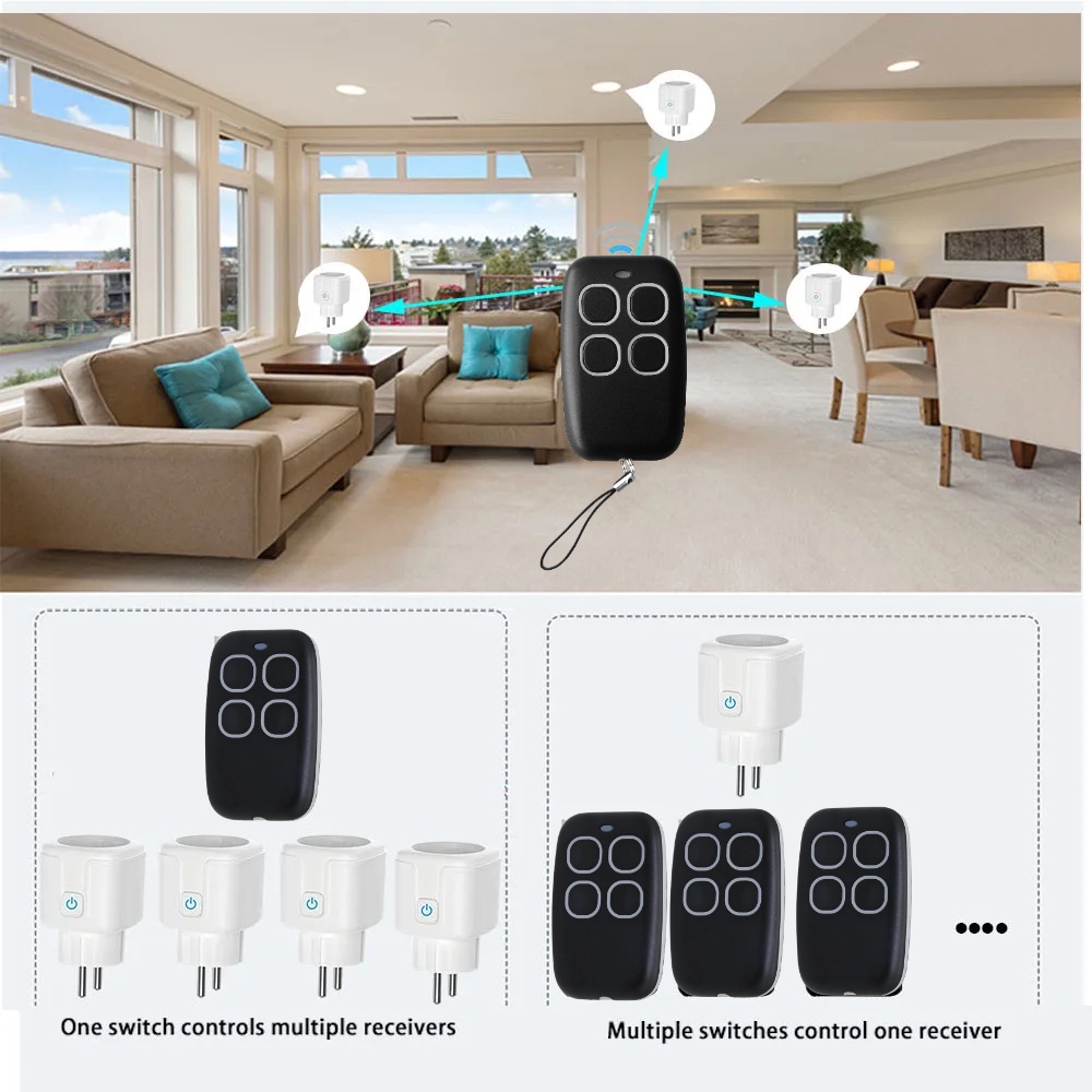 433Mhz Wireless Electric Socket Remote Control Switch EU FR Mini Plug 220V 110V 16A for Lamp living room coffeemachine light fan