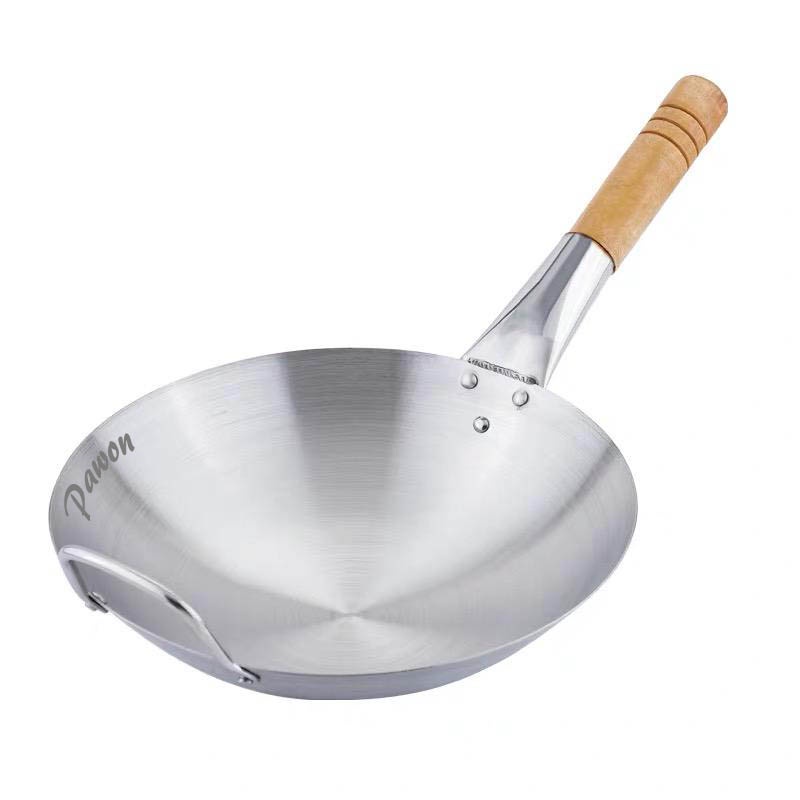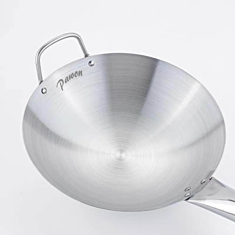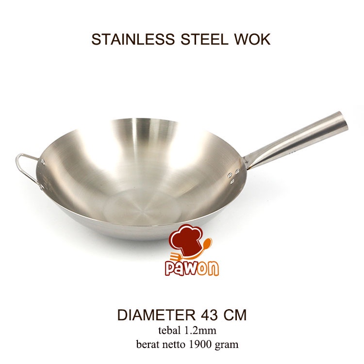 43CM KUALI WOK WAJAN STAINLESS STEEL TEBAL ADA PEGANGAN