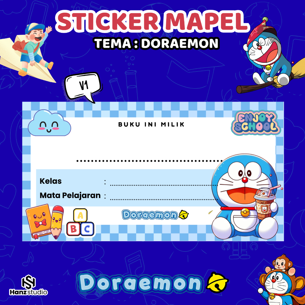 44 pcs Sticker Buku Doraemon / Sticker Custom Nama Label Buku Pelajaran Desain Menarik