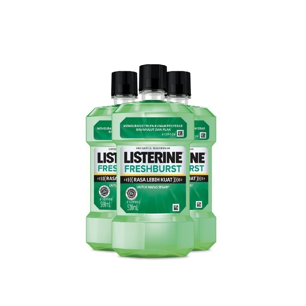 LISTERINE Fresh Burst Antiseptic Mouthwash / Obat Kumur Antiseptik 500ml - Isi 3