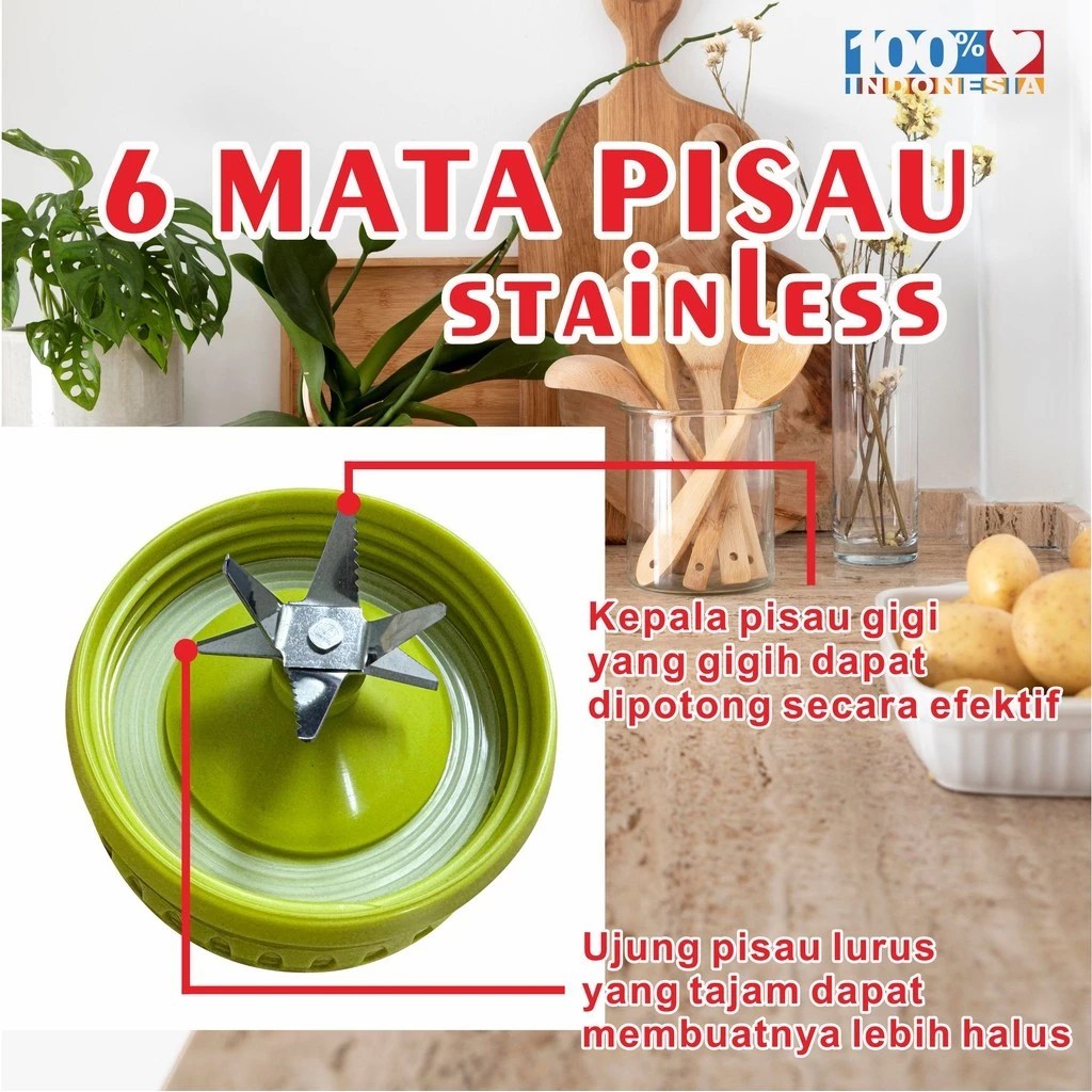 Blender Gelas Kaca 2in1 Pisau Stainless Food Grade Multifungsi 6 Mata Garansi Resmi 1 Tahun (K)