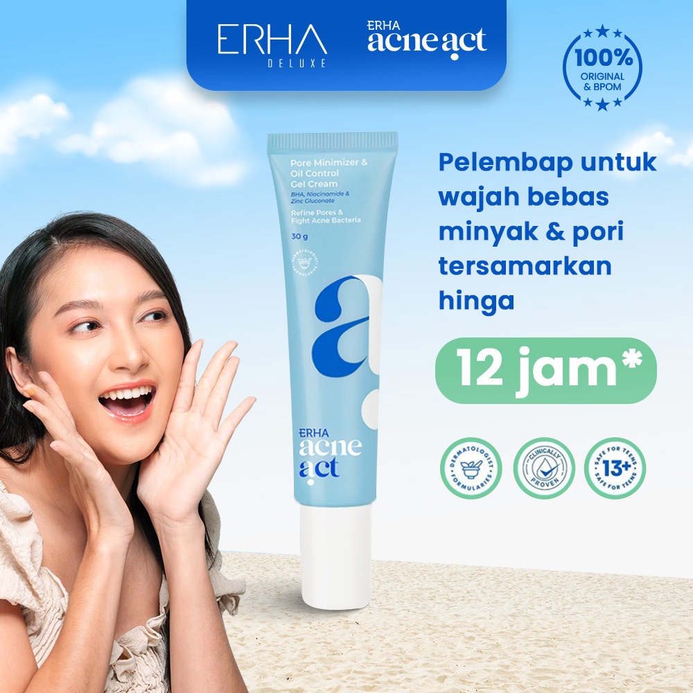 ERHA AcneAct Moisturizer Krim Pore Minimizer & Oil Control Gel Cream - Krim Pelembab Wajah Berminyak