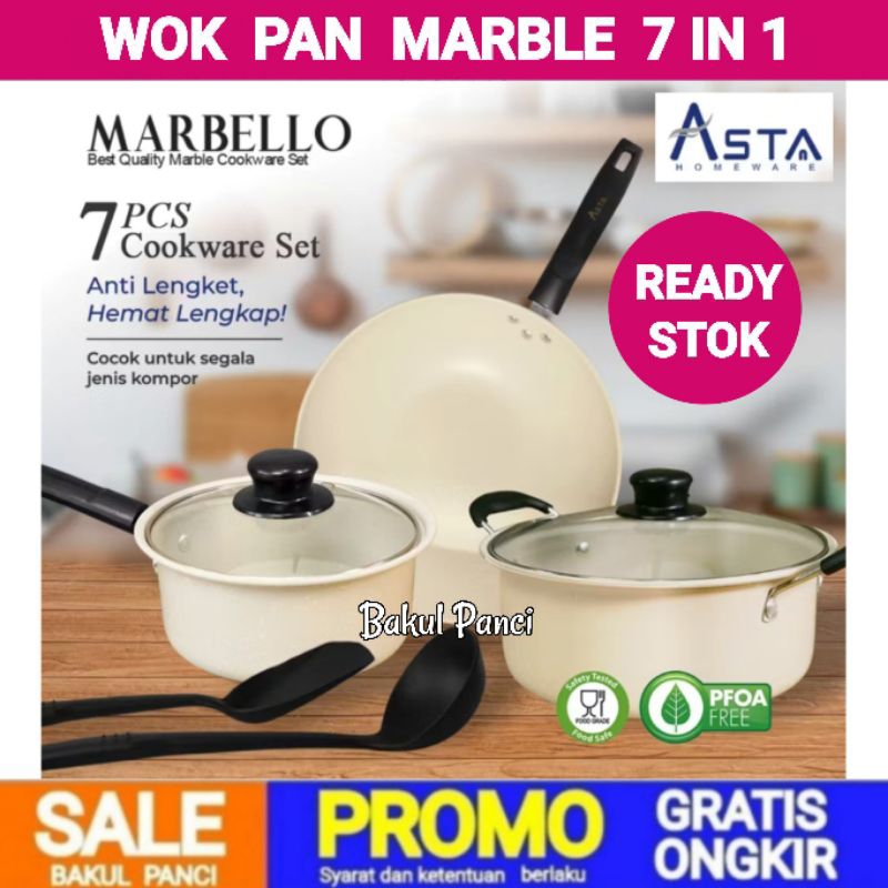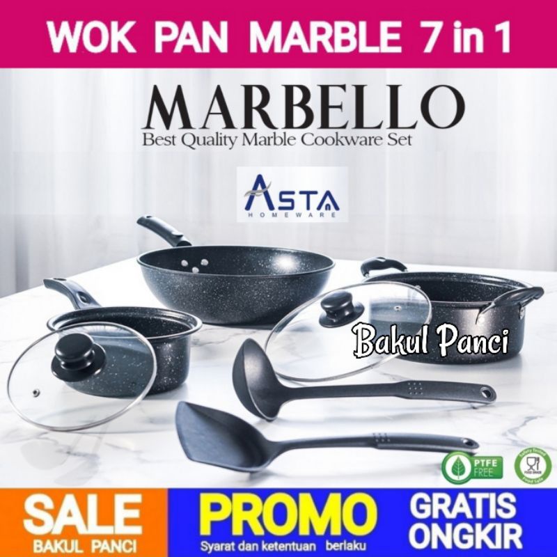 WAJAN PANCI MARBLE - ASTA NEW MARBELLO COOKWARE SET 7 PCS - PANCI GRANITE CERAMIC ANTI LENGKET