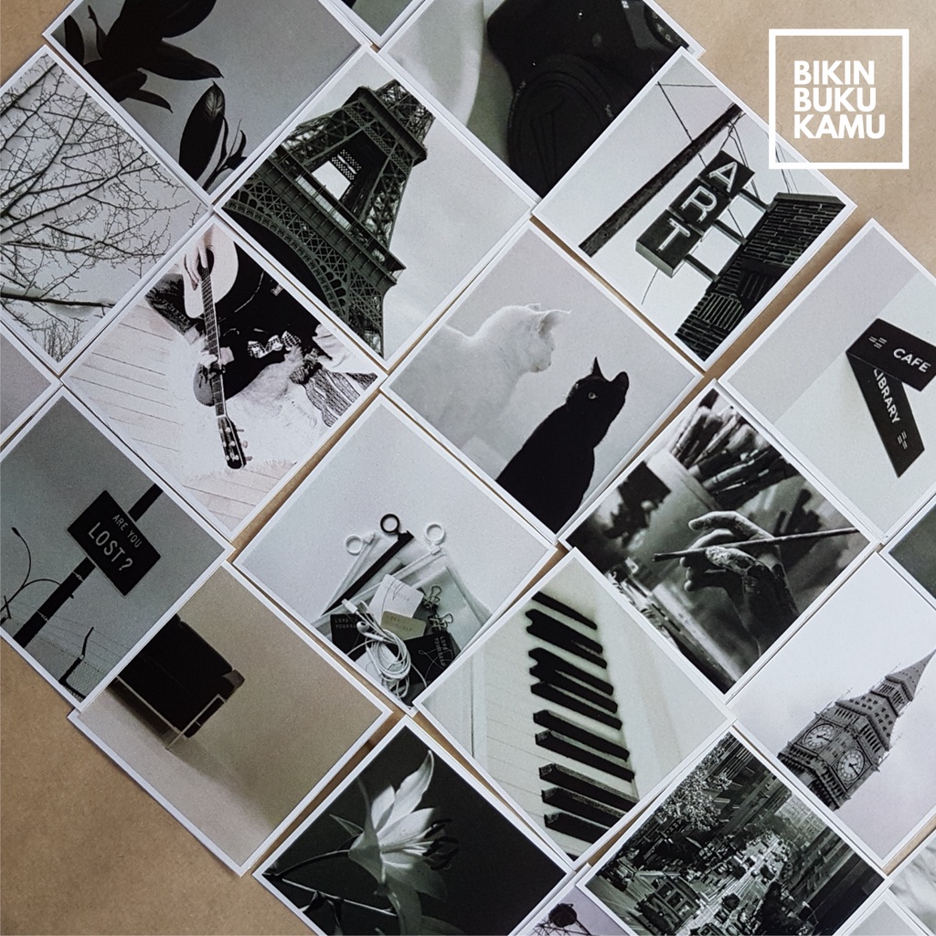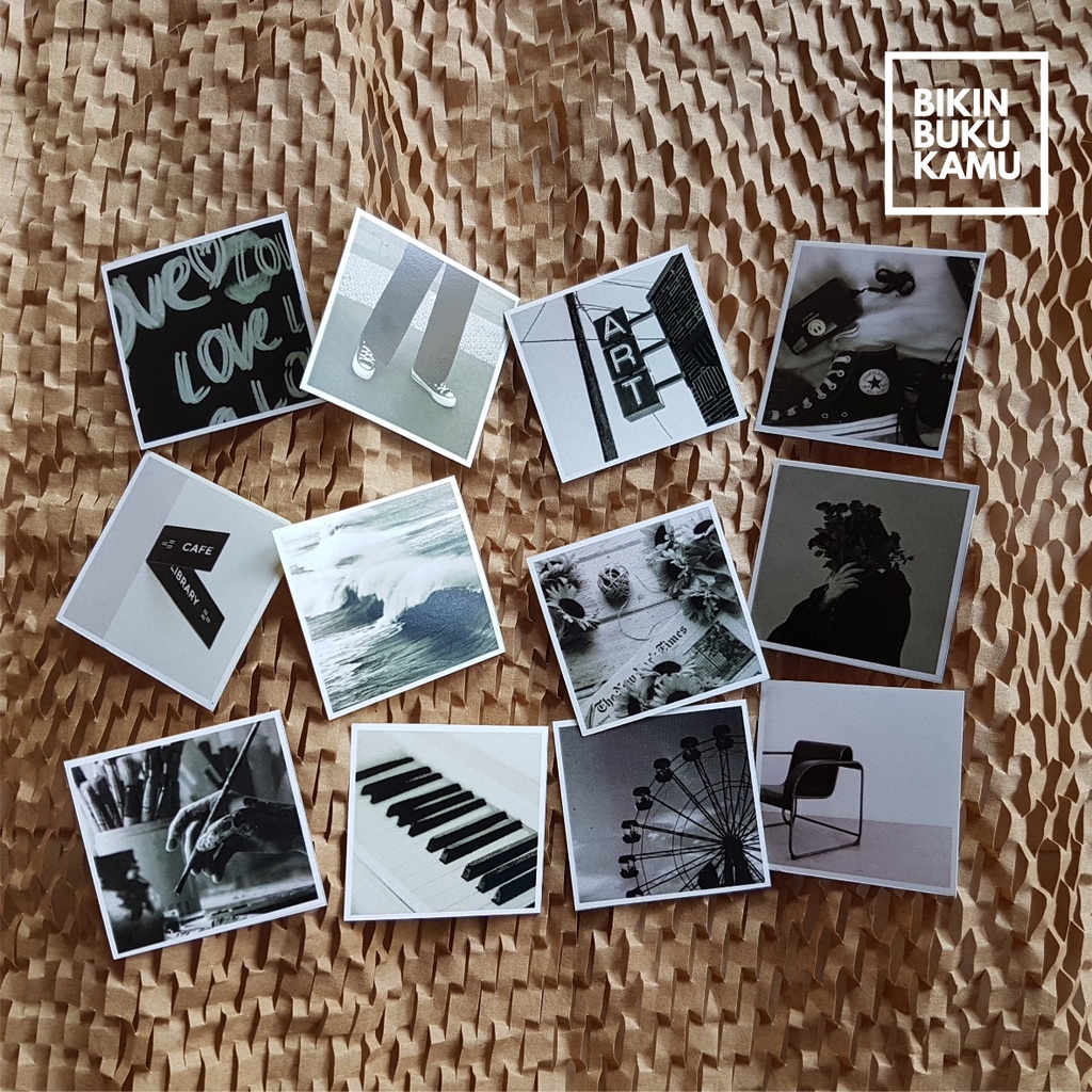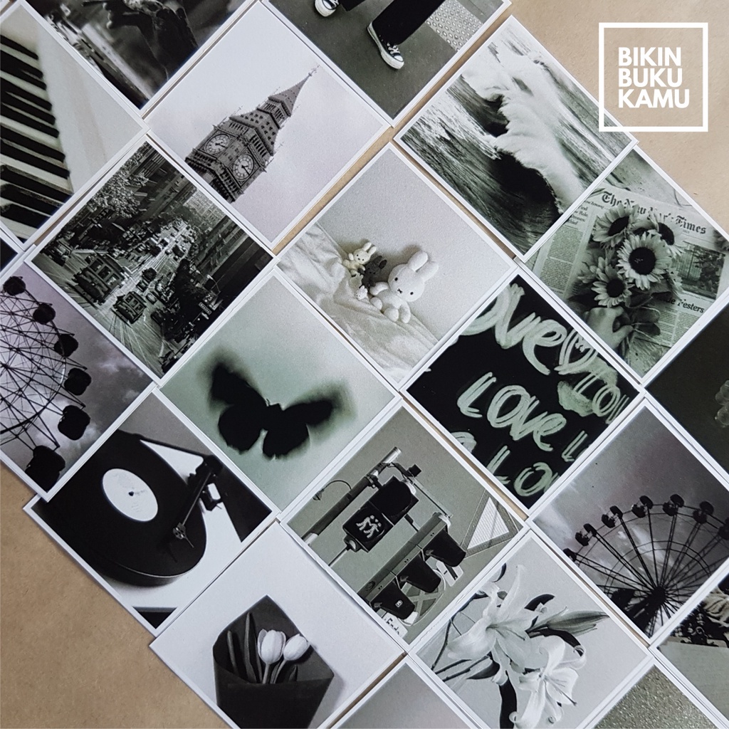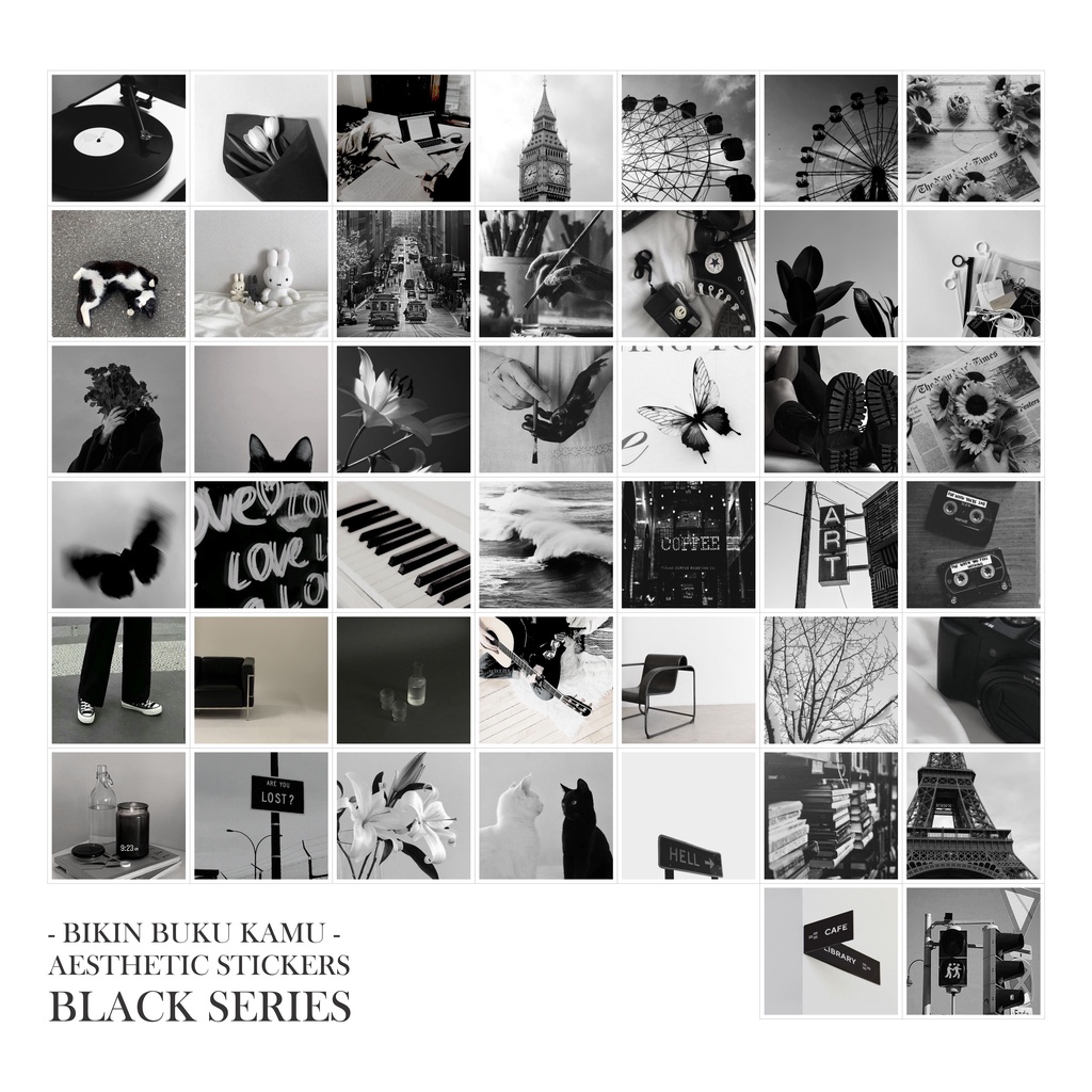 44pcs Stiker HVS aesthetic estetik foto gambar potret jurnal / scrapbook / journaling notebook sticker - Black Grayscale