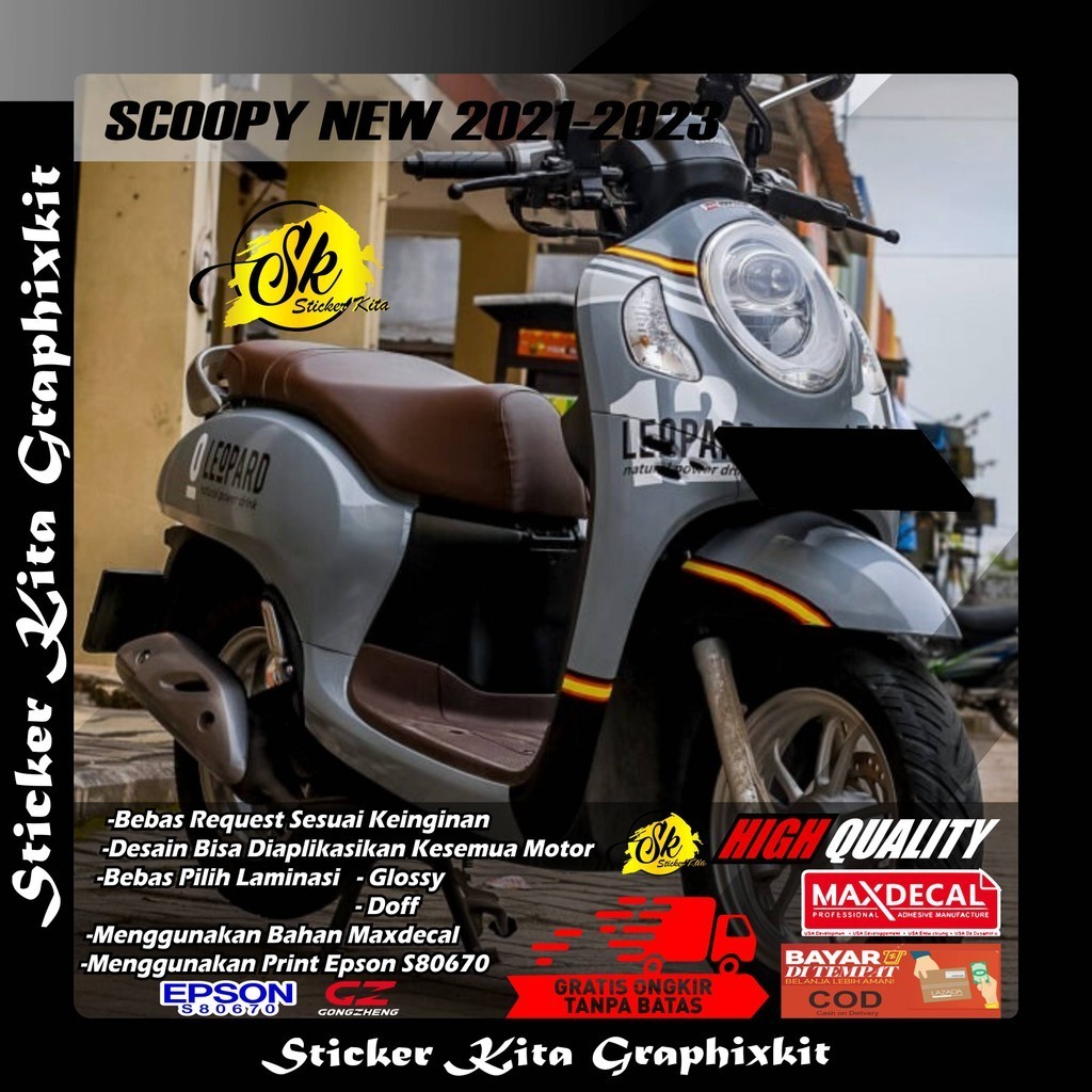 451DECAL STICKER FULLBODY MOTOR SCOOPY NEW 2021-2023 DESAIN SIMPEL LEOPARD FREE REQUEST DAN COSTUM