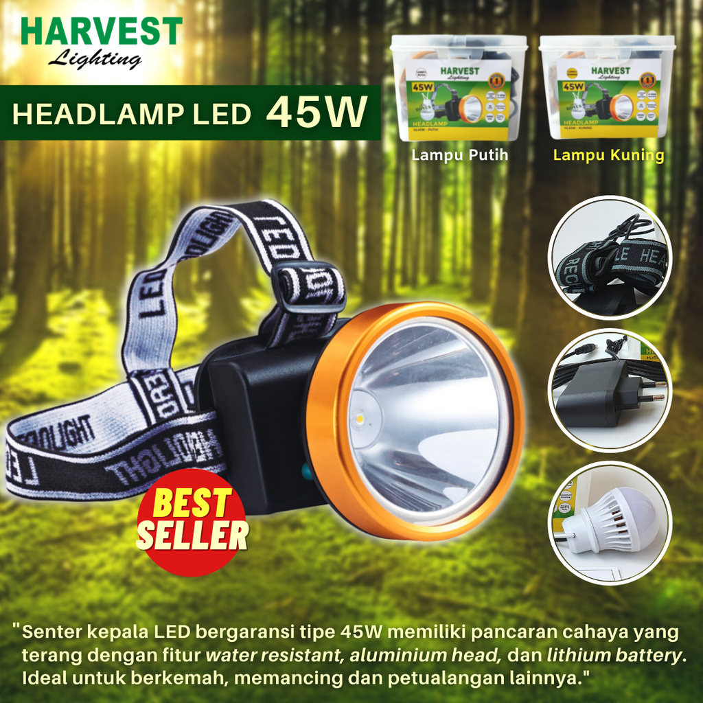 45W Headlamp HARVEST LIGHTING Senter Kepala LED Lampu Emergency Travel Berburu Bergaransi