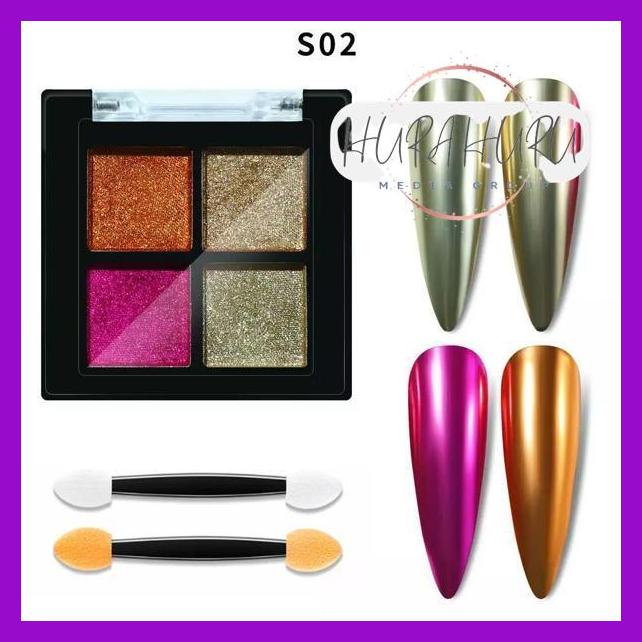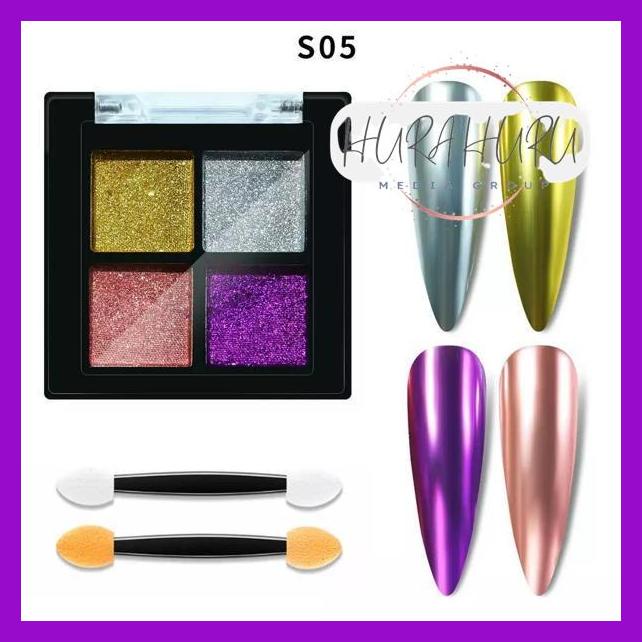 4Color Solid Chrome Powder Aurora Mix Color / Bubuk Chrome Compact 4 Warna Hiasan Dekorasi Nailart Murah Banget !!