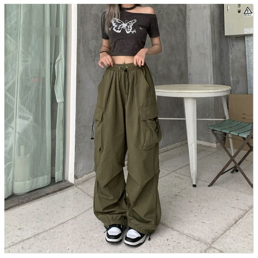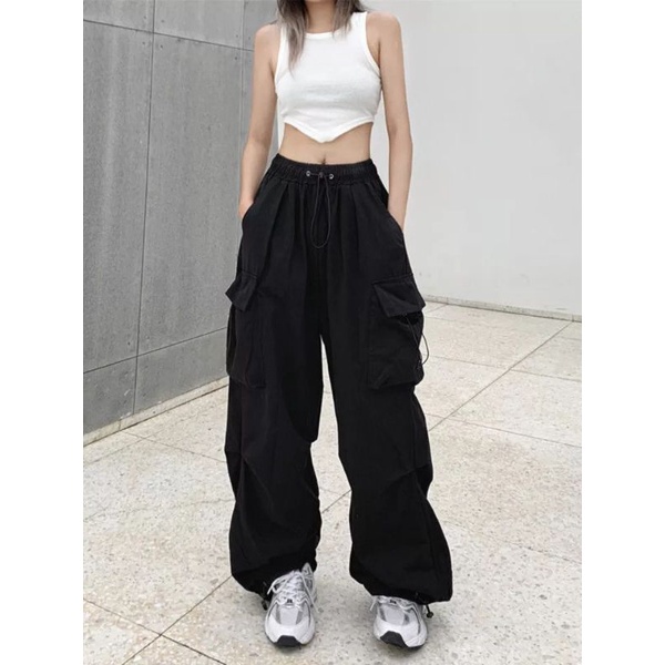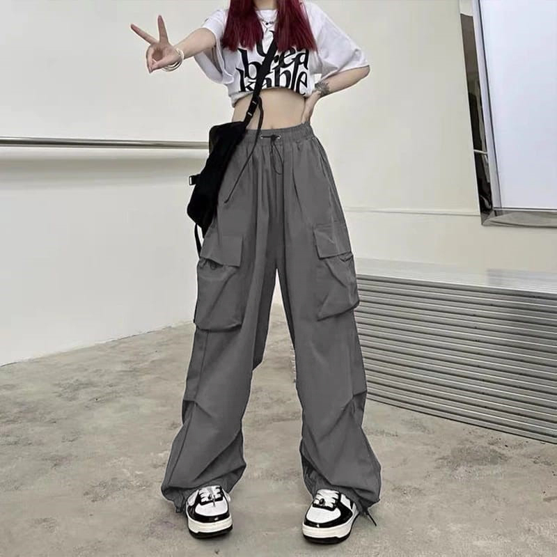 4boys- celana kasual harajuku kargo Teachwear Stretwear pria wanita