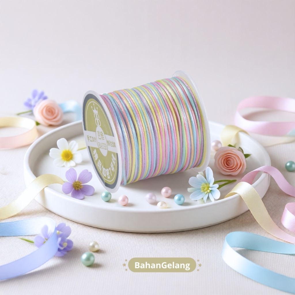 Tali Satin 1mm 5 Meter – untuk Gelang Tali, Simpul Cina, Kalung Handmade – 33 Warna Pilihan: Polos Bold, Pastel, Gradasi – Stok Ready