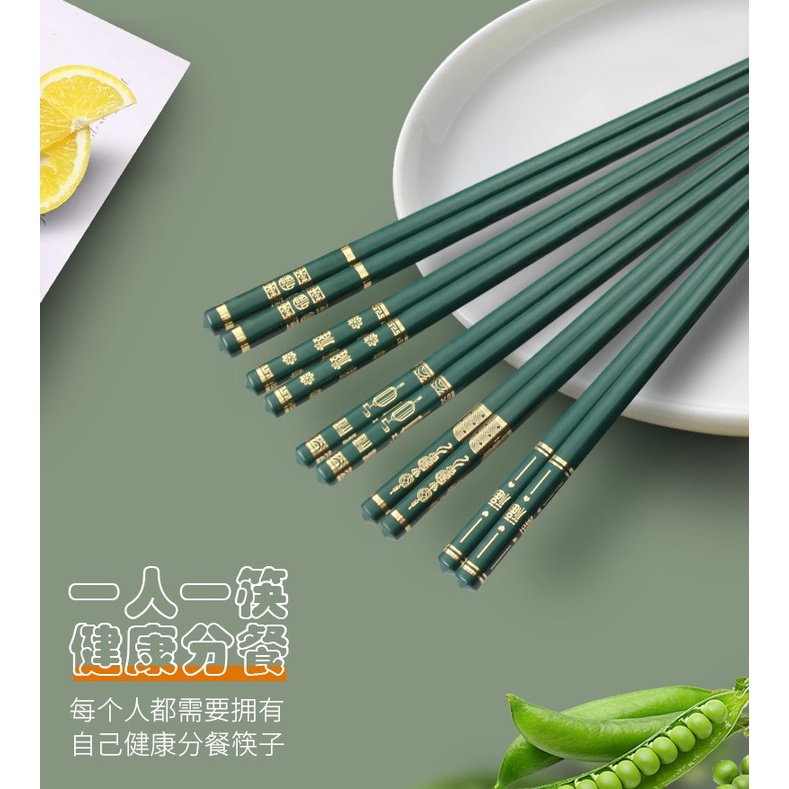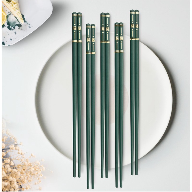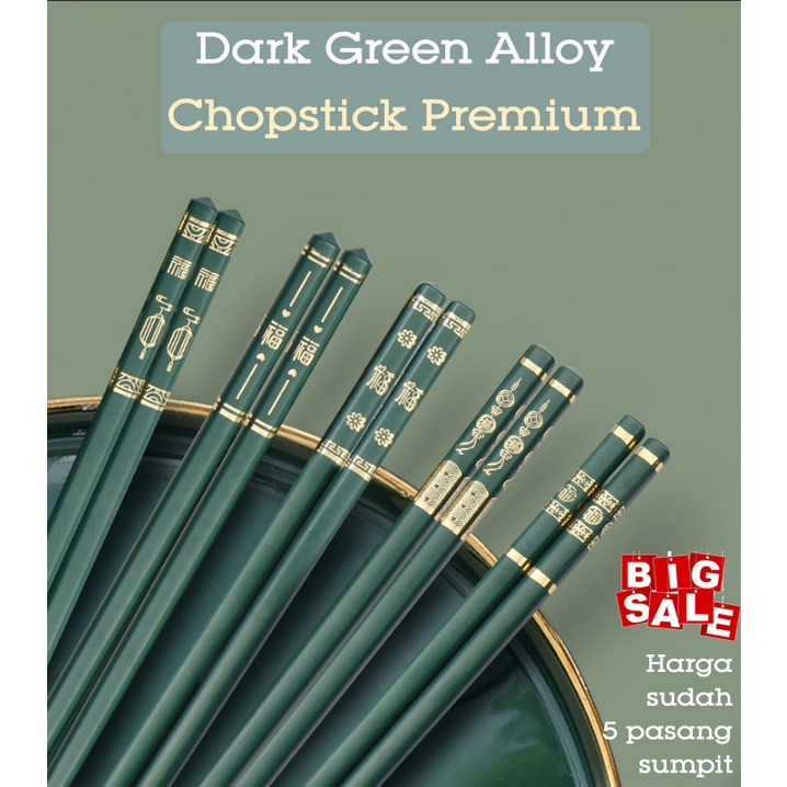 5 Set Sumpit Dark Green Chopstick Restaurant China Jepang Hijau Korea Elegant Alloy Restoran Luxury Terbaru hot Best seller blessing
