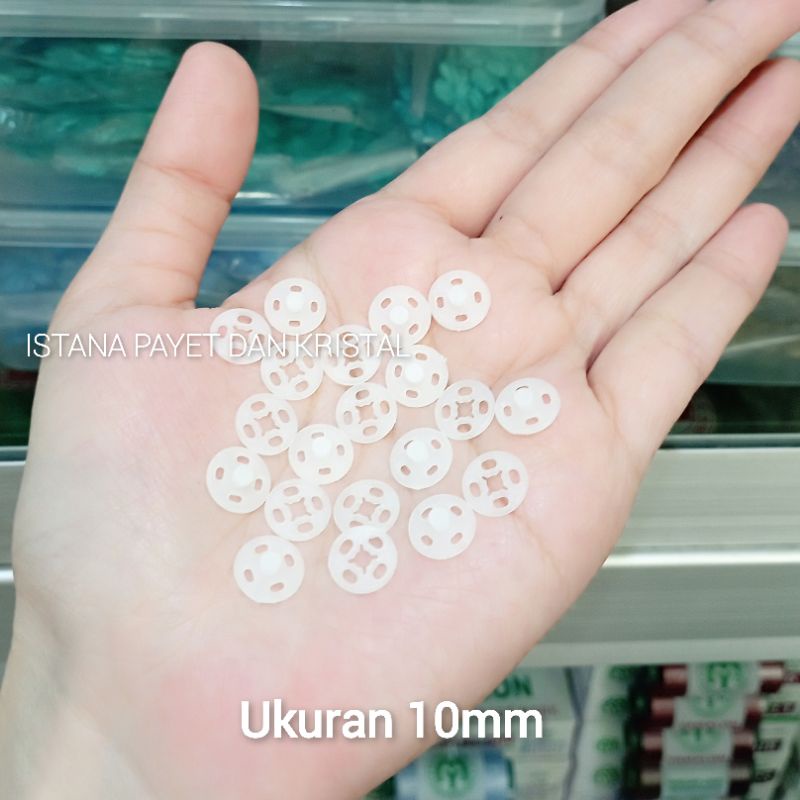 TERLENGKAP 5 pasang Kancing cetet / kancing jepret plastik transparan putih & hitam
