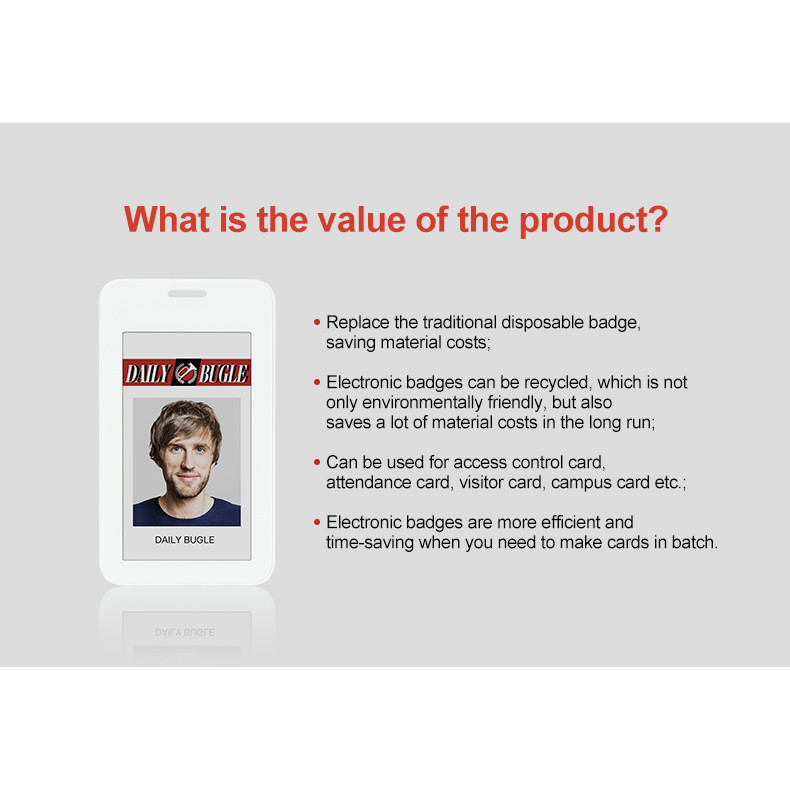 5 pcs smart badges and 1 card reader combo set, eink ID card e-ink employee ID badges epaper ID card NFC ID card