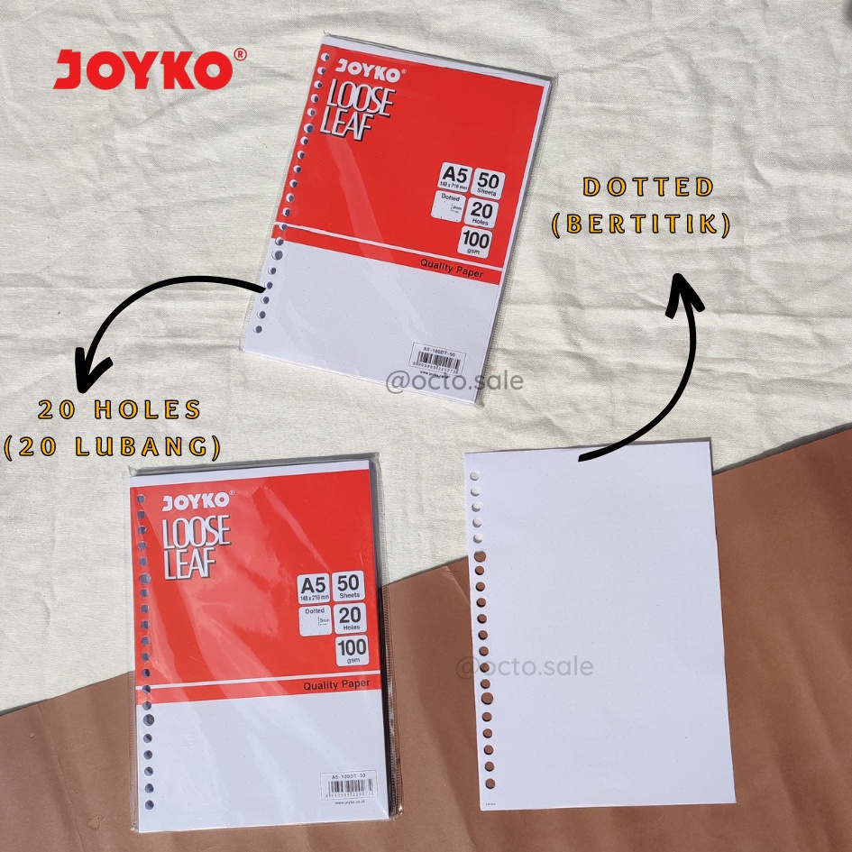 50 Lembar Kertas Binder Loose Leaf Joyko | Plain Loose Leaf | Line Loose Leaf | Dotted Loose Leaf | Kertas Binder Polos | Kertas Binder Bergaris | Kertas Binder Bertitik