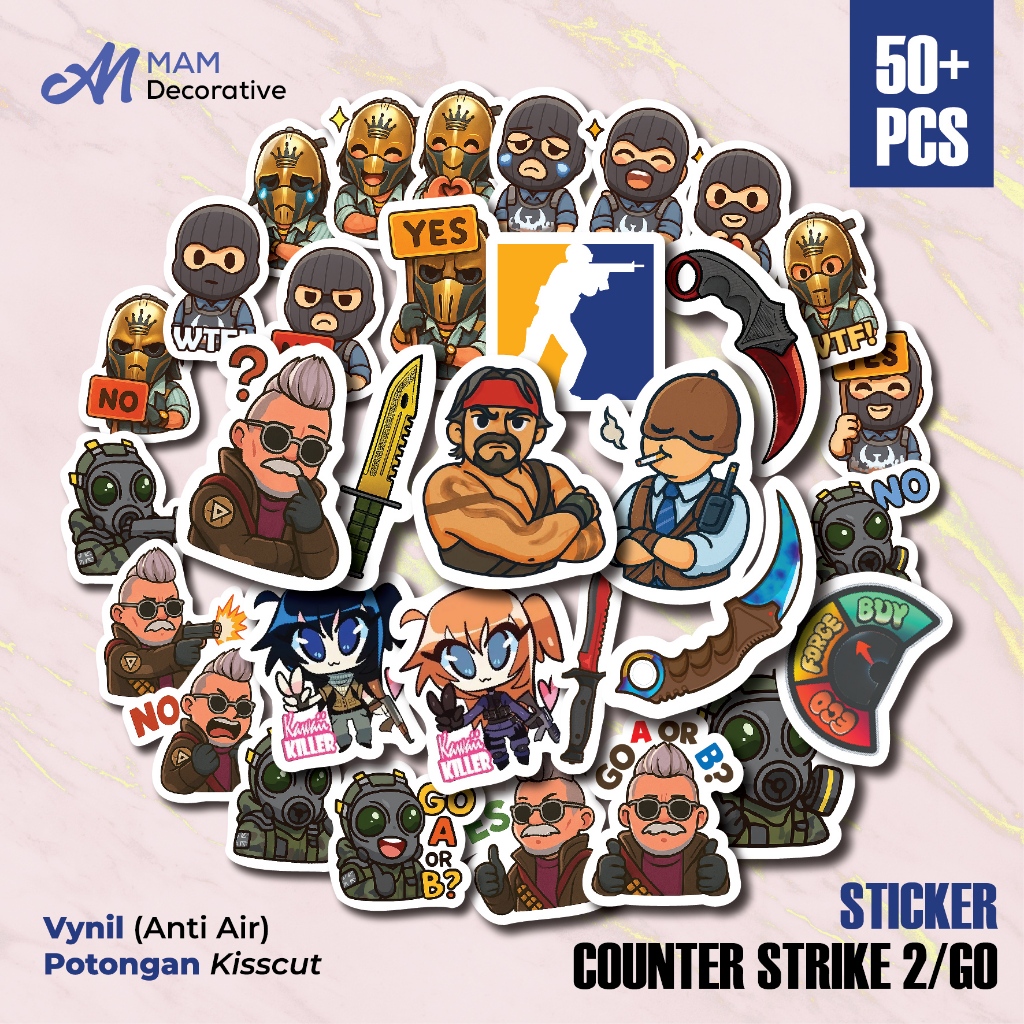 50 PCS STIKER COUNTER STRIKE 2 / CSGO | Vinyl Waterproof | Stiker Lucu Kreatif untuk Helm Buku Journal Casing HP Laptop