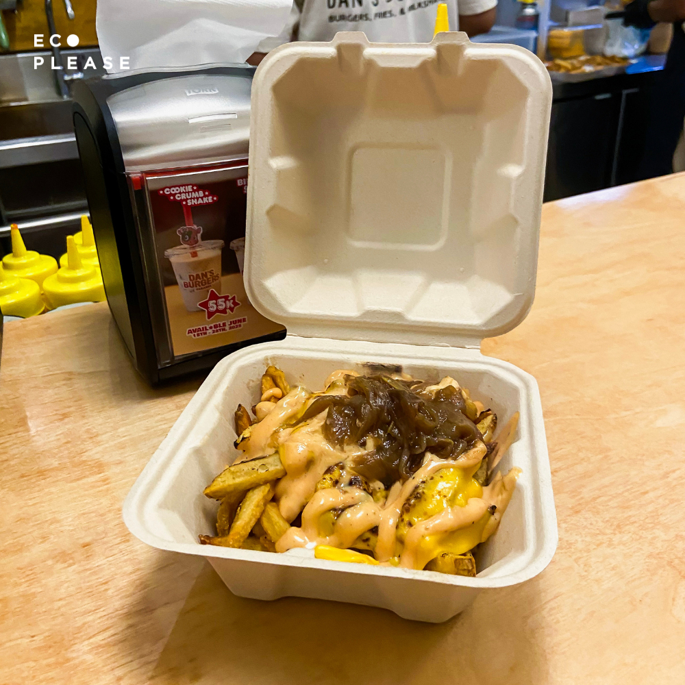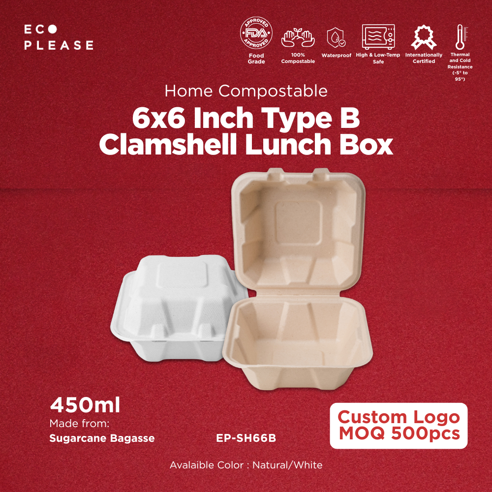 50pcs Ecoplease 6x6" Type B Bagasse Clamshell Bento Cake Burger Box - Home Compostable Ecofriendly Ramah Lingkungan Biodegradable Ampas Tebu