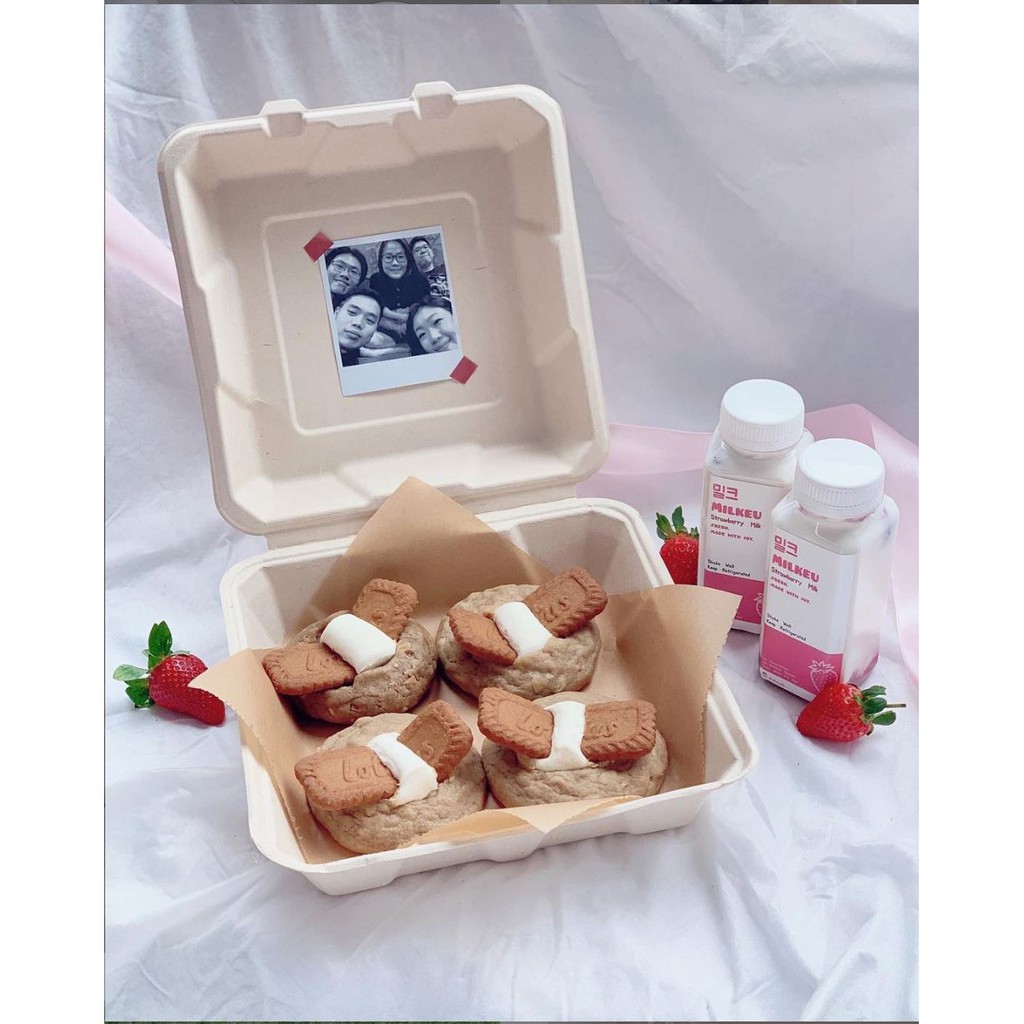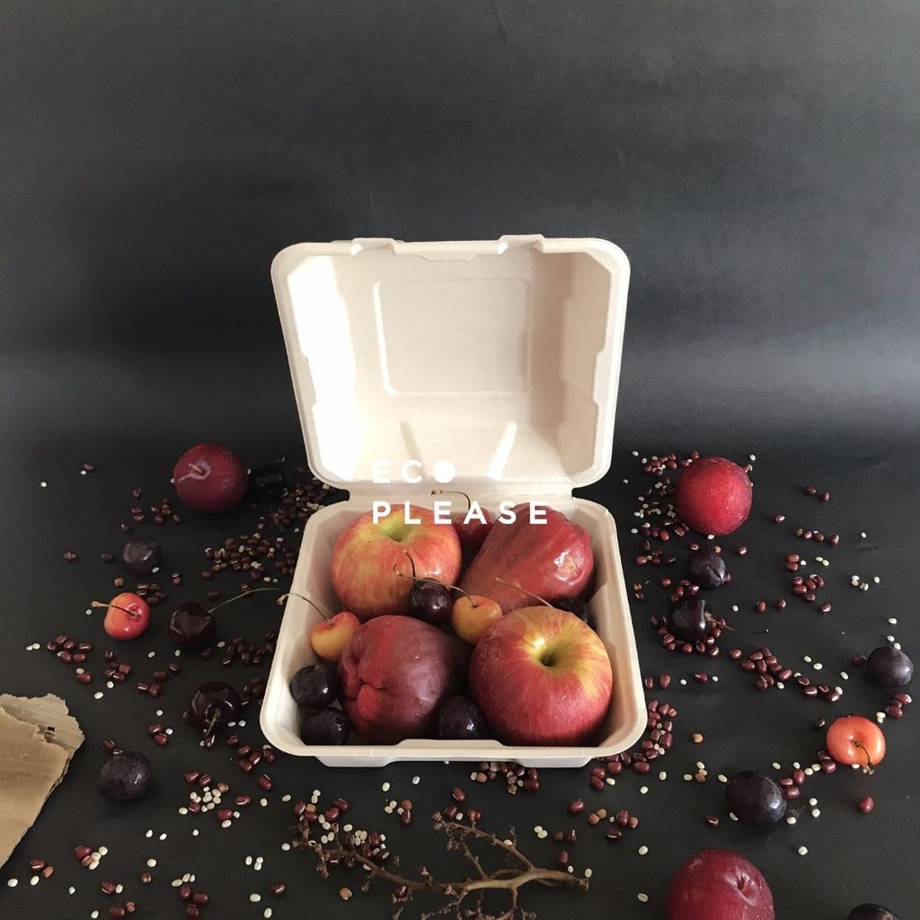 50 pcs Ecoplease 8x8" Bagasse Clamshell Takeaway Box - Kotak Bagasse Ramah Lingkungan Tanpa Sekat