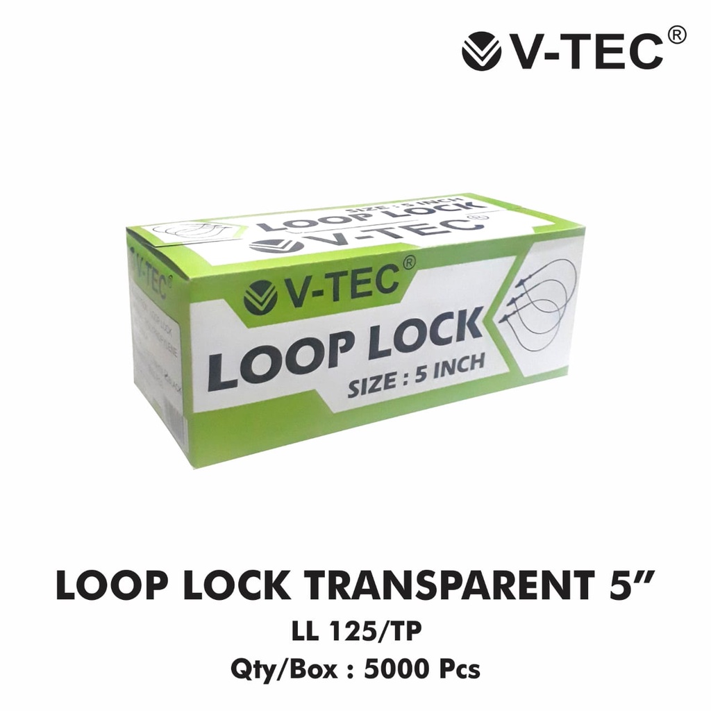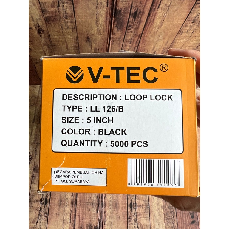 500 Pcs Loop Pin Hitam Putih 5 Inchi - Loop Lock V-Tec LL 126/B - Tali Hangtag - Tali Label 5 inch - Label Laundry