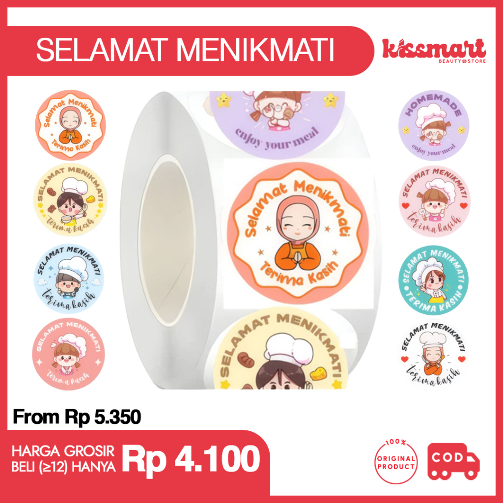 KM 500 Pcs Sticker Roll 2,5cm Selamat Menikmati Stiker Makanan Kue Thank You Terima Kasih ST001