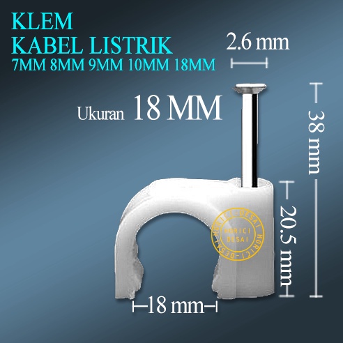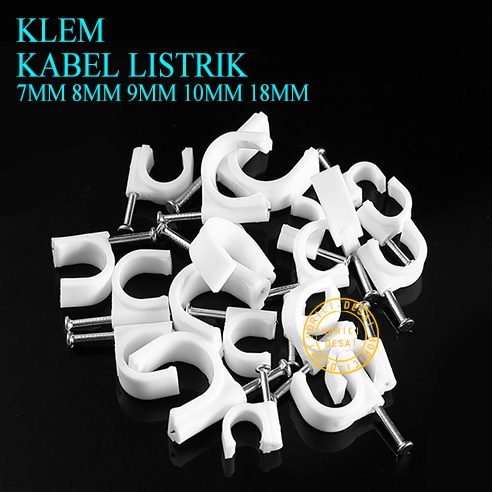50PCS & 35PCS Clamp Kabel /KLEM KABEL LISTRIK PLASTIK WARNA PUTIH + PAKU BETON ANTI KARAT UKURAN 7mm 8mm 9mm 10mm 18mm