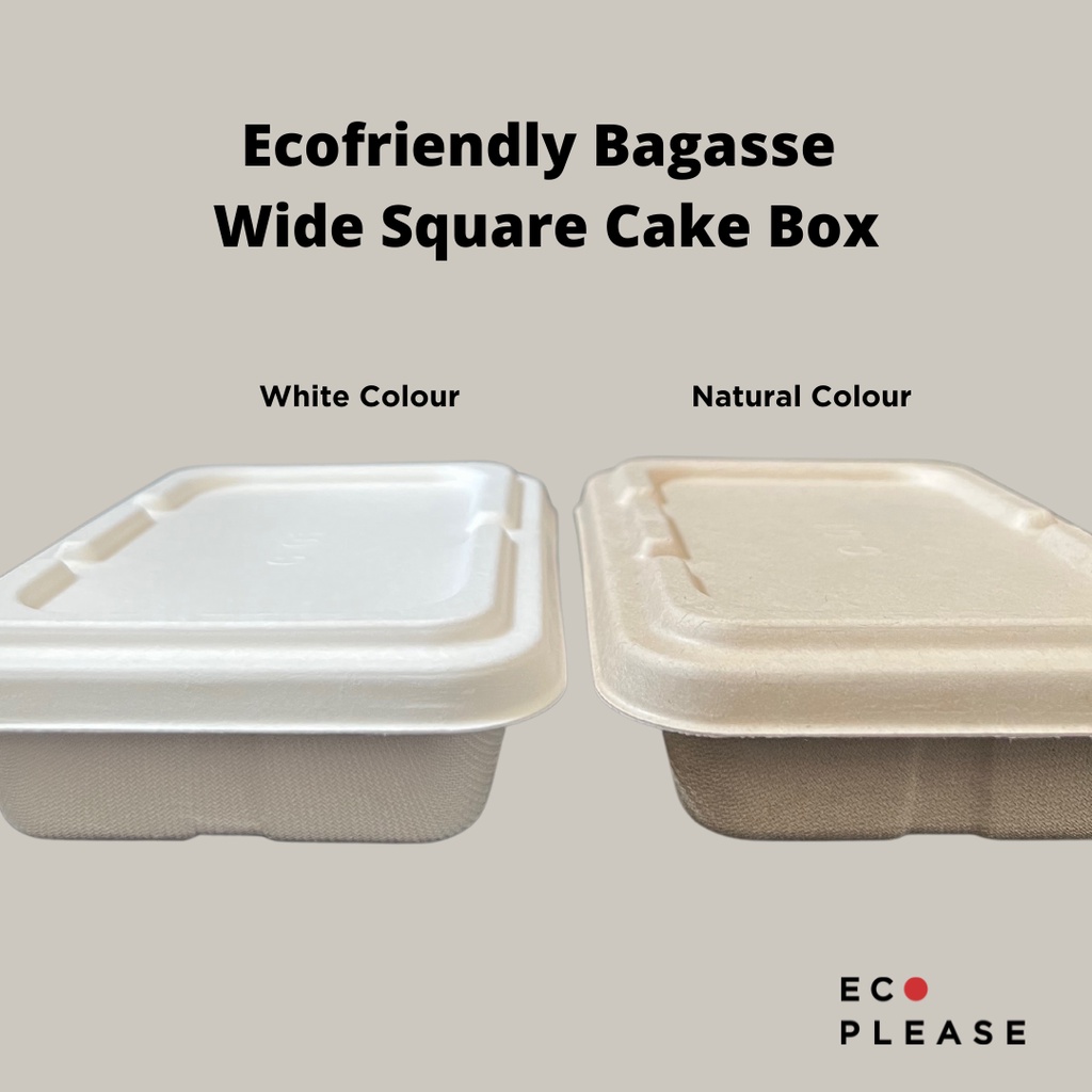 50pcs Ecoplease 500ml Bagasse Wide Square Lunch Box + Lid Home Compostable Ecofriendly Ramah Lingkungan Biodegradable Loyang Oven Safe & Food Grade