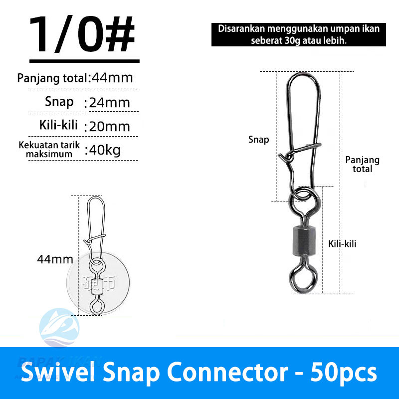 50pcs Bantalan Swivel Snap Connector Pancing Baja Tahan Karat Kotak Kancing Putar Putar Aksesori Umpan Pancing untuk Kait Umpan-BK009