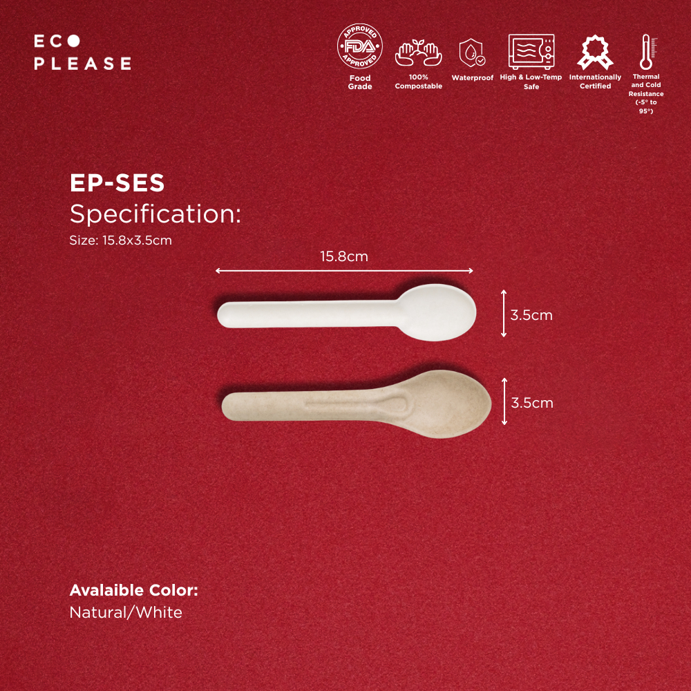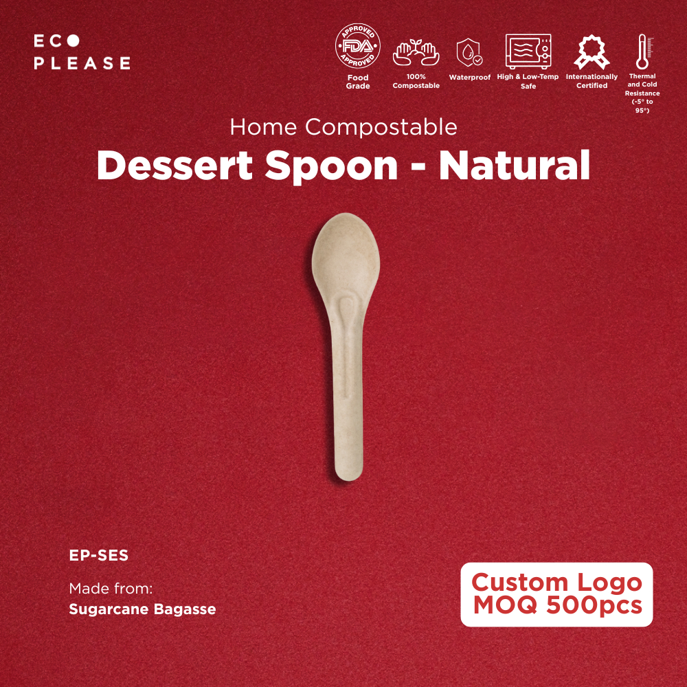 50pcs Ecoplease Bagasse Dessert Spoon - Sendok Kecil Kue/Pudding Sekali Pakai Home Compostable Ecofriendly Ramah Lingkungan Biodegradable Ampas Tebu
