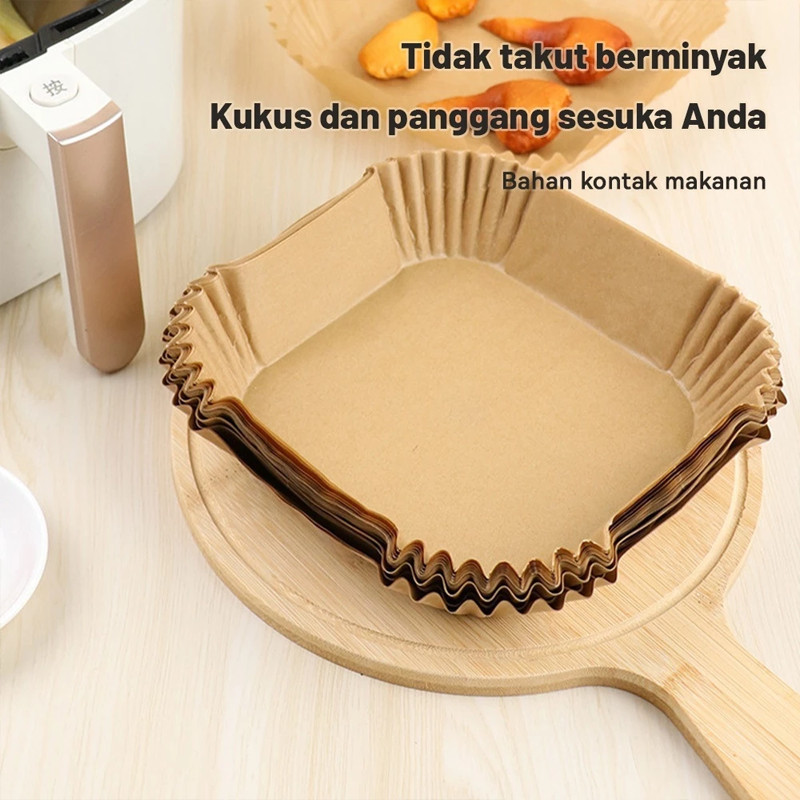 50pcs Kertas Alas Air Fryer / Air Fryer Parchment Paper / Round Bulat Anti Lengket / Kertas Minyak / Baking Paper