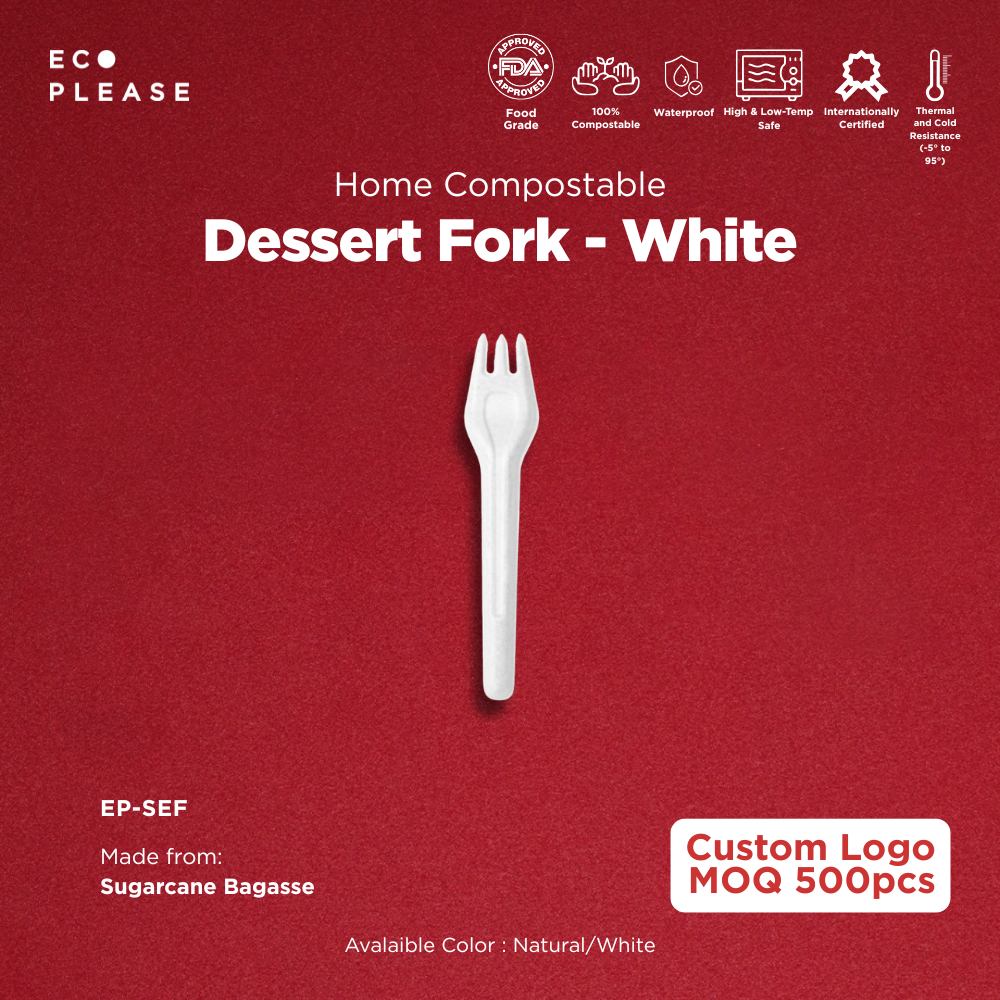 50pcs Ecoplease Dessert Fork - Garpu Kecil Kue Dessert Pudding Snack Home Compostable Ecofriendly Ramah Lingkungan Biodegradable Ampas Tebu